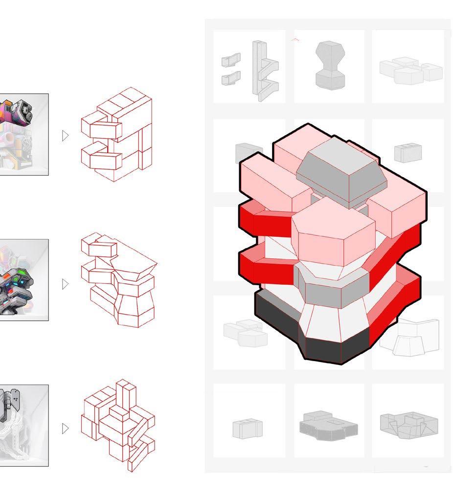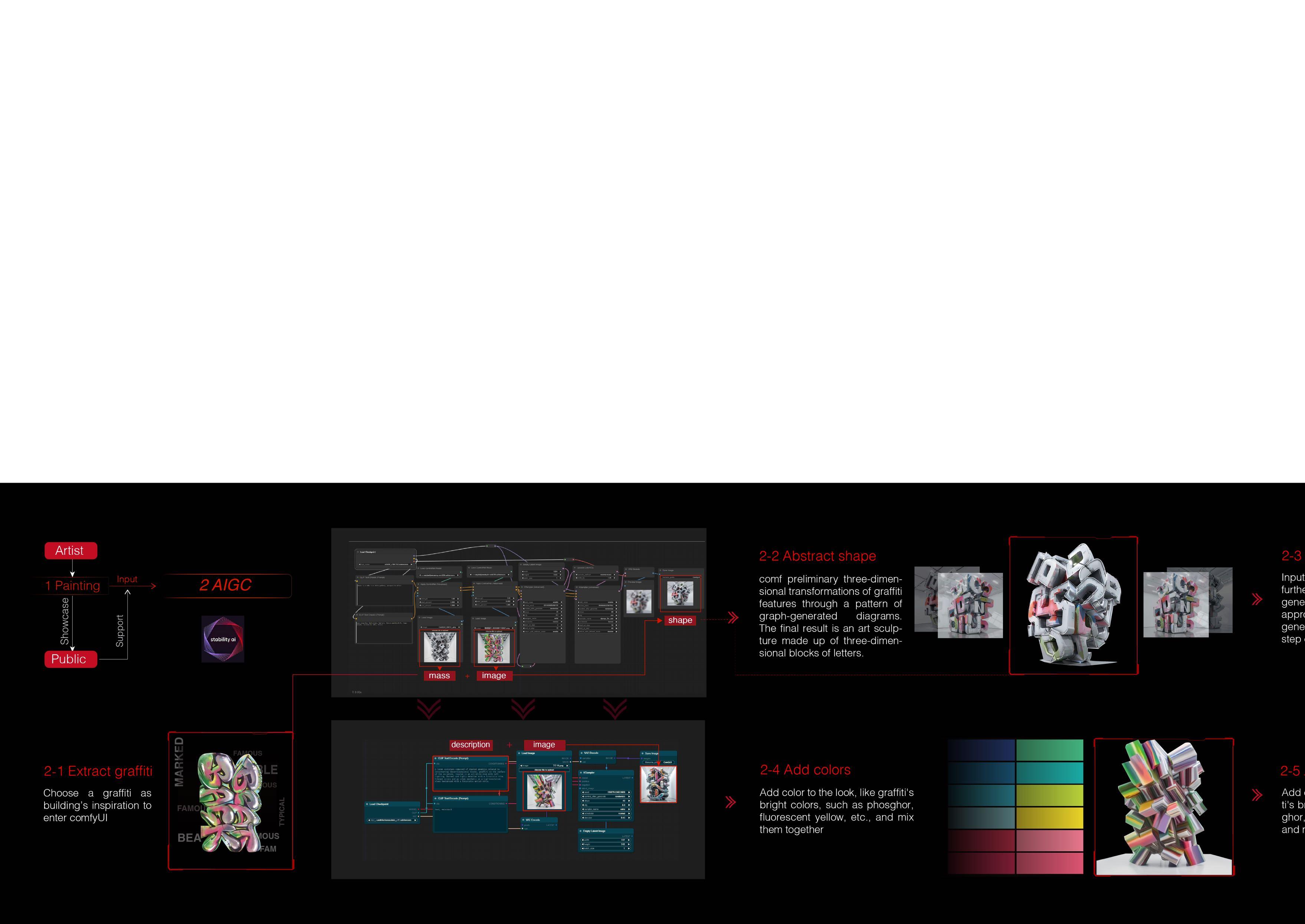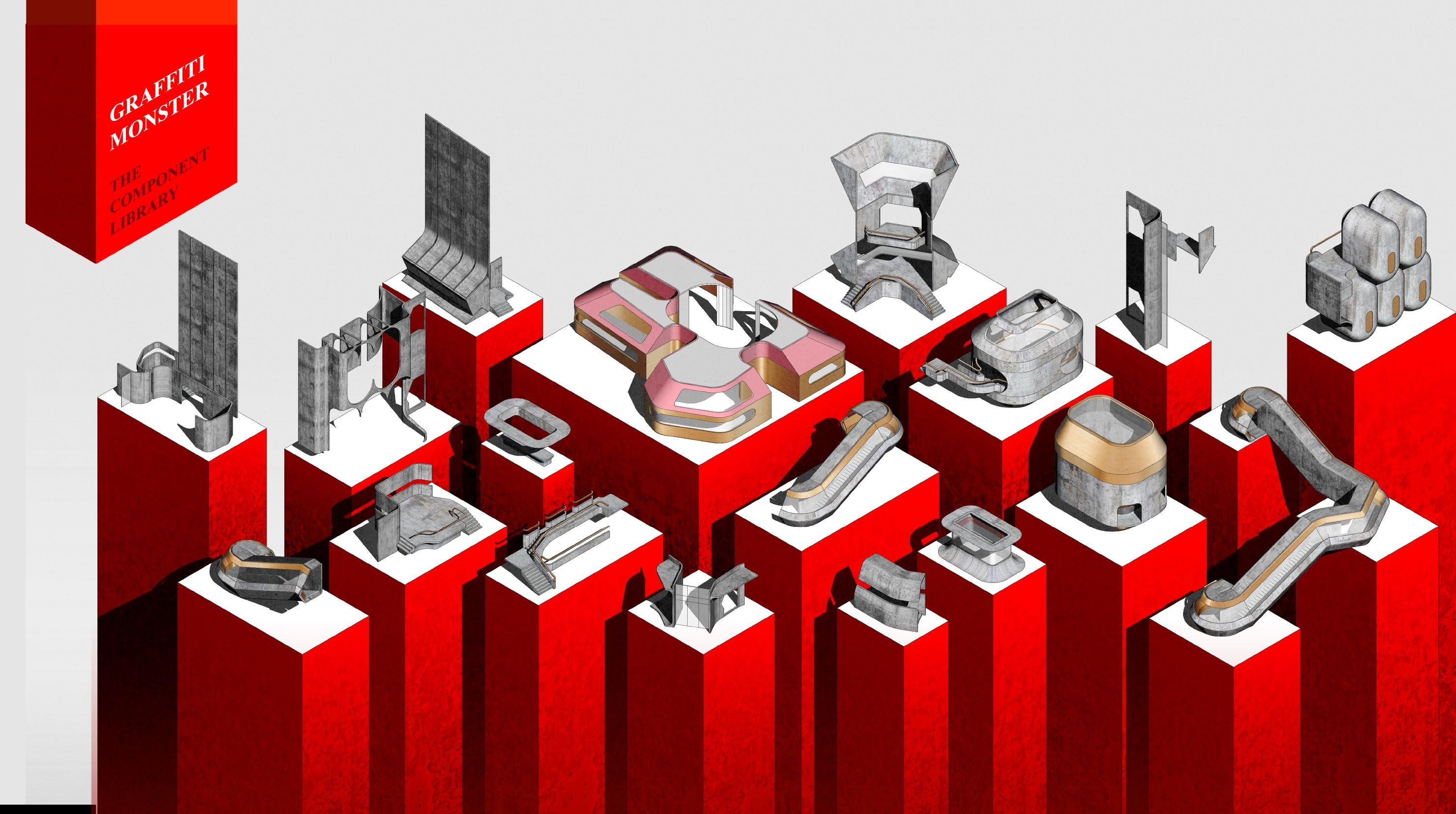 Players can select graffiti, AI transformation, and building parts in order to complete a complete building.