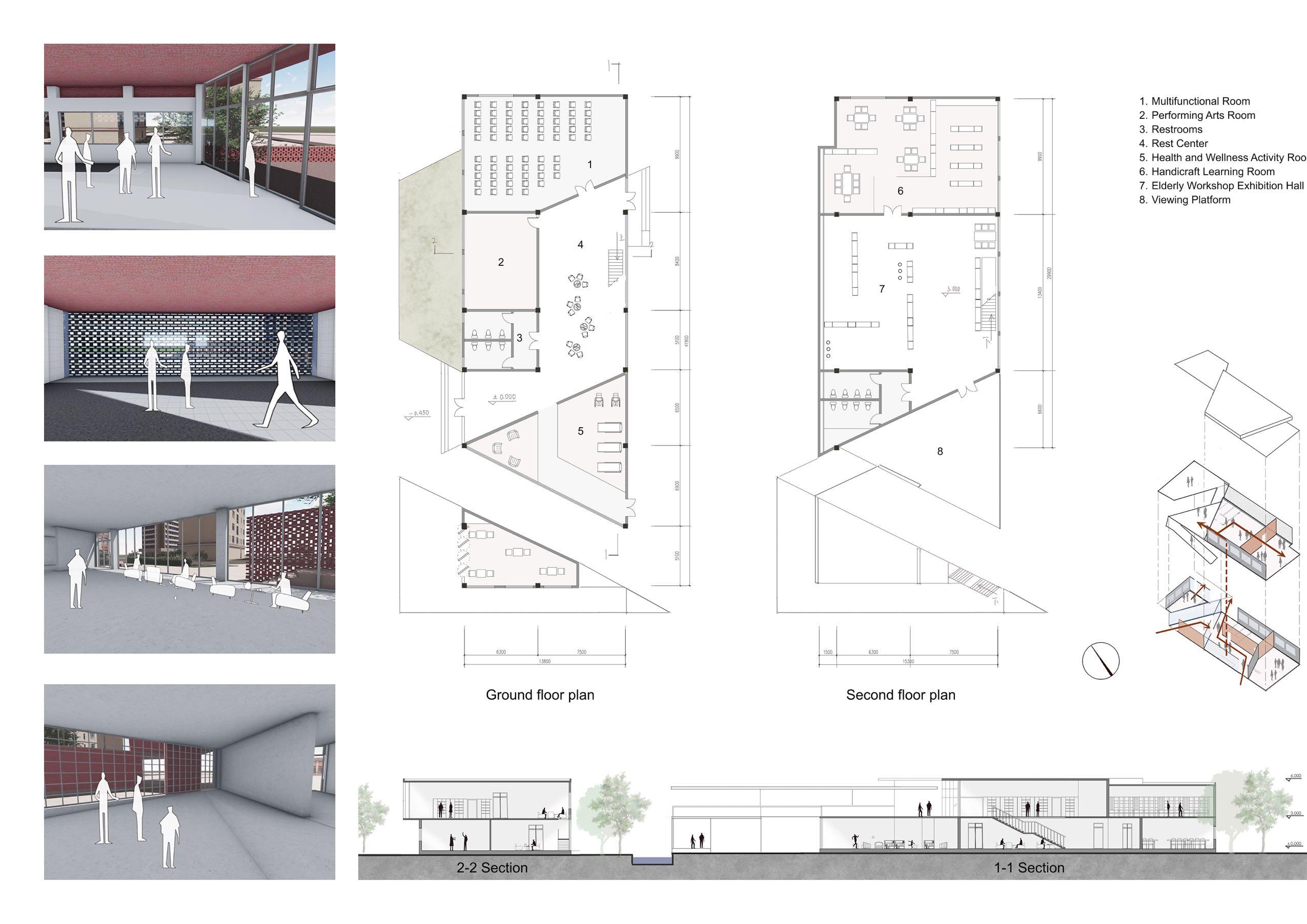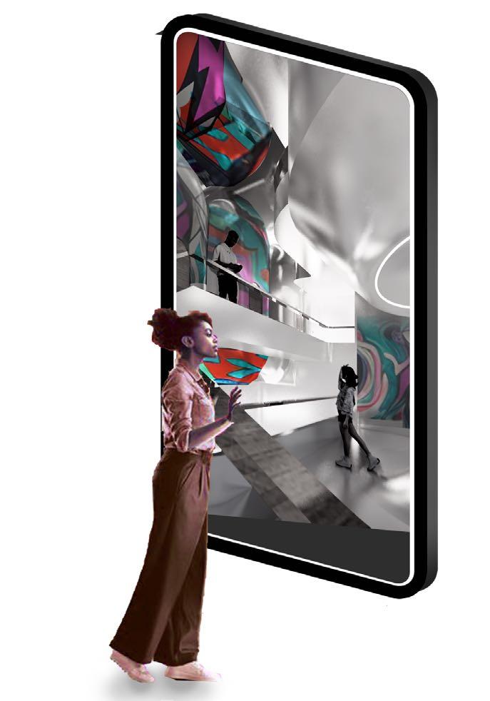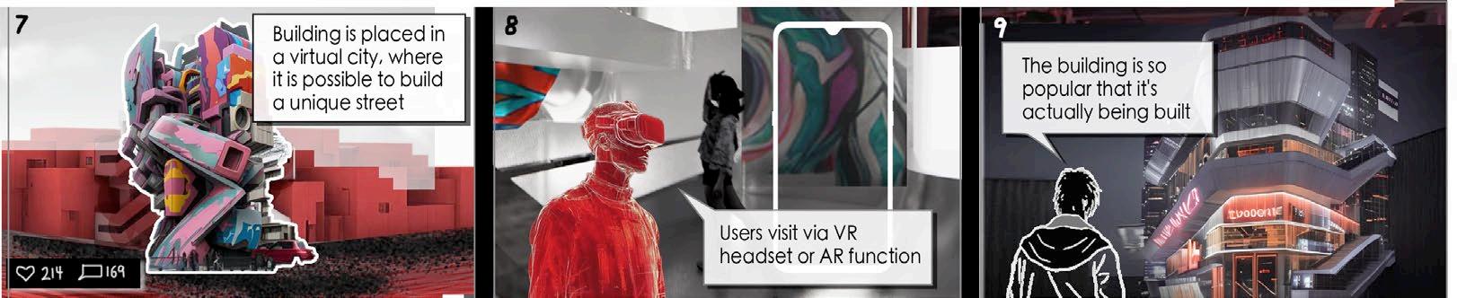 2 People can explore the building through AR interaction in the game, which includes various areas such as exhibition spaces, creation zones, and interactive spaces.