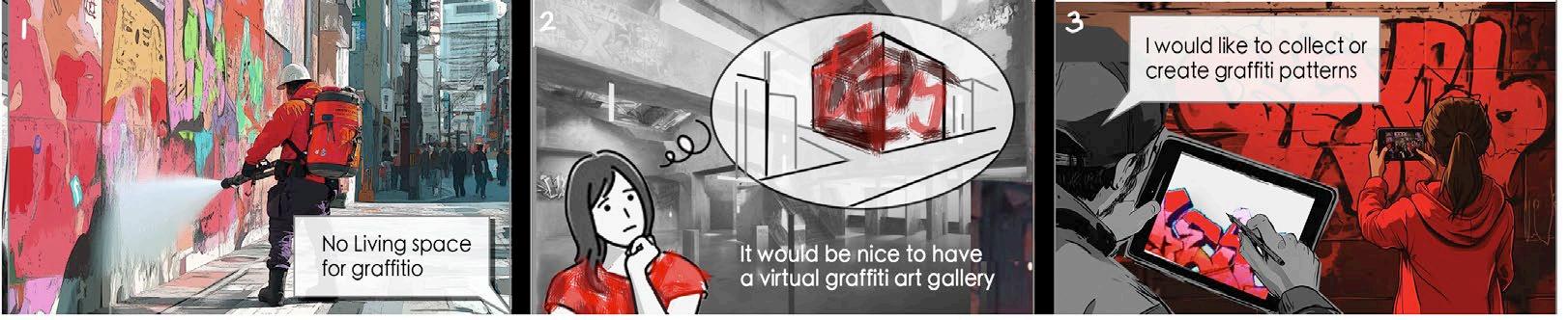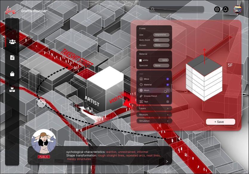 Graffiti is a visual and spiritual symbol that is directly expressed on the street façade of Takeshita-dori, and the project proposes to use graffiti as an element to carry the graffiti culture of Takeshita-dori, which used to be characterized by its individuality, and its “sense of individuality”.