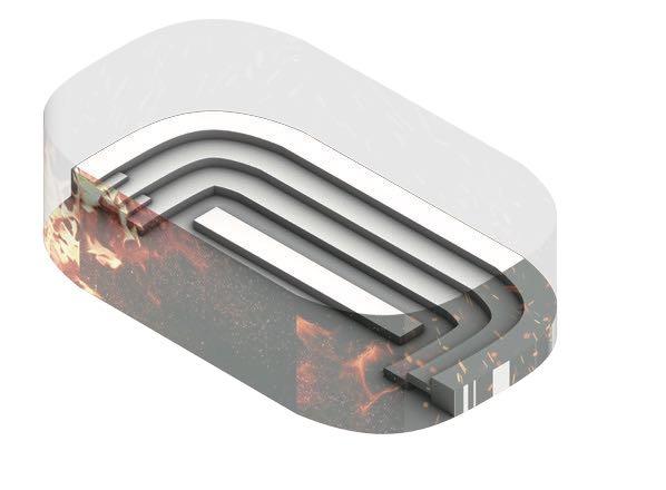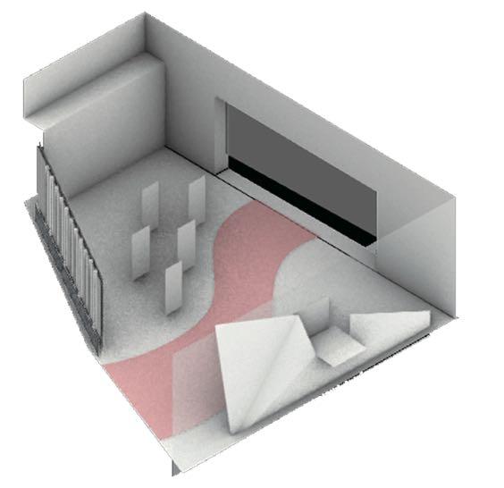 Five arched displays form a section of the corridor where one walks through a history of flames and brick motifs, which like bricks are burned by the flames to react, be sculpted, and ultimately become a finished piece.