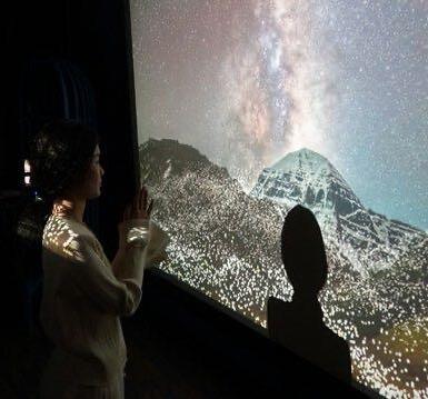 2 The bricks gradually light up as the visitors walk along the corridor, and touch lights up.
