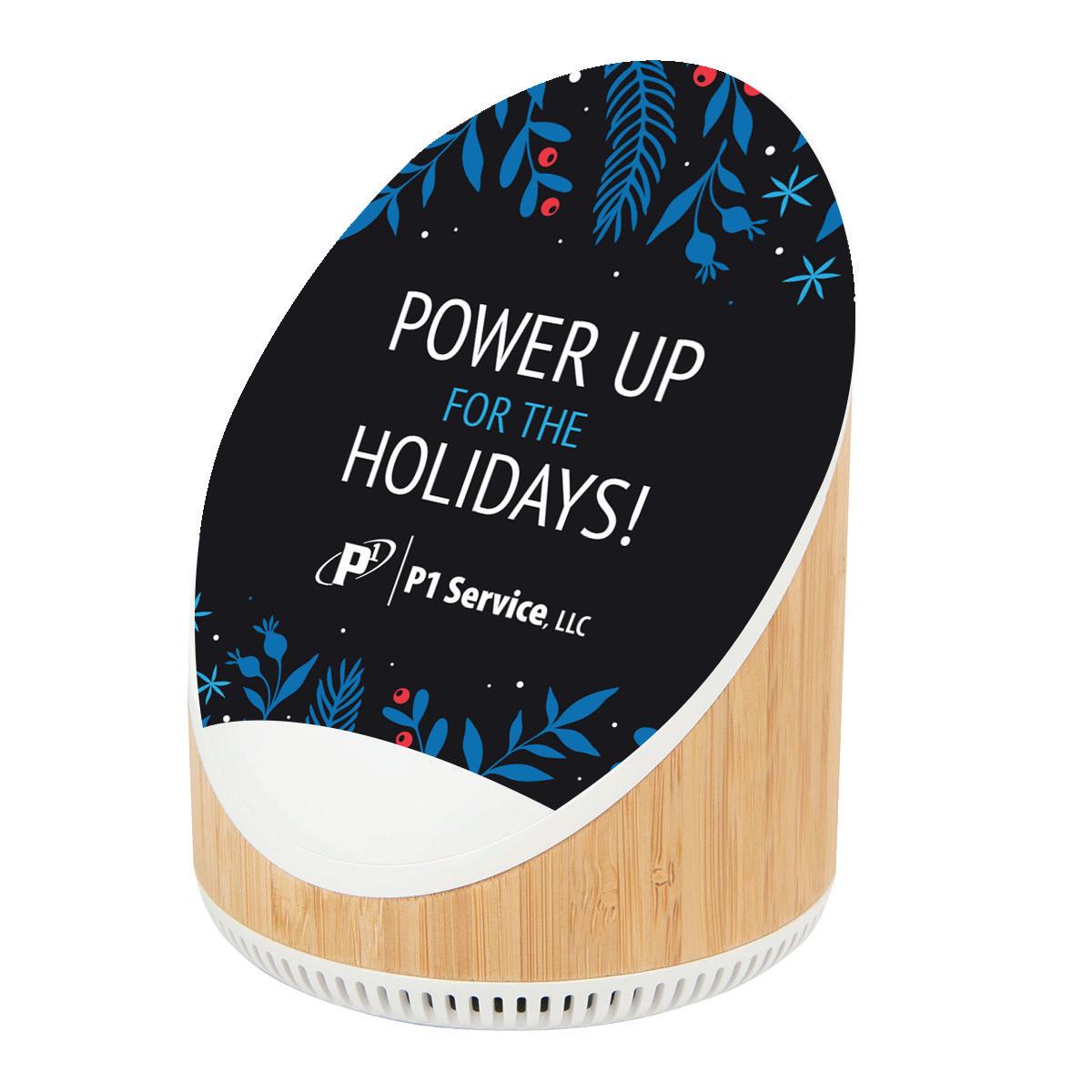This gift set includes a laser etched Fast Wireless Charging Pad and an engraved bluetooth speaker in a full-color box with sizzle.