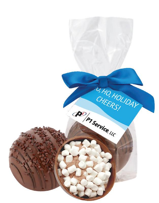 This gift set includes a full-color custom box with sizzle, a 15 oz. ceramic forge mug, and a hot chocolate bomb mug stuffer with a custom hangtag!