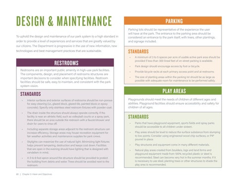 DESIGN & MAINTENANCE To uphold the design and maintenance of our park system to a high standard in order to provide a level of experiences and services that are greatly valued by