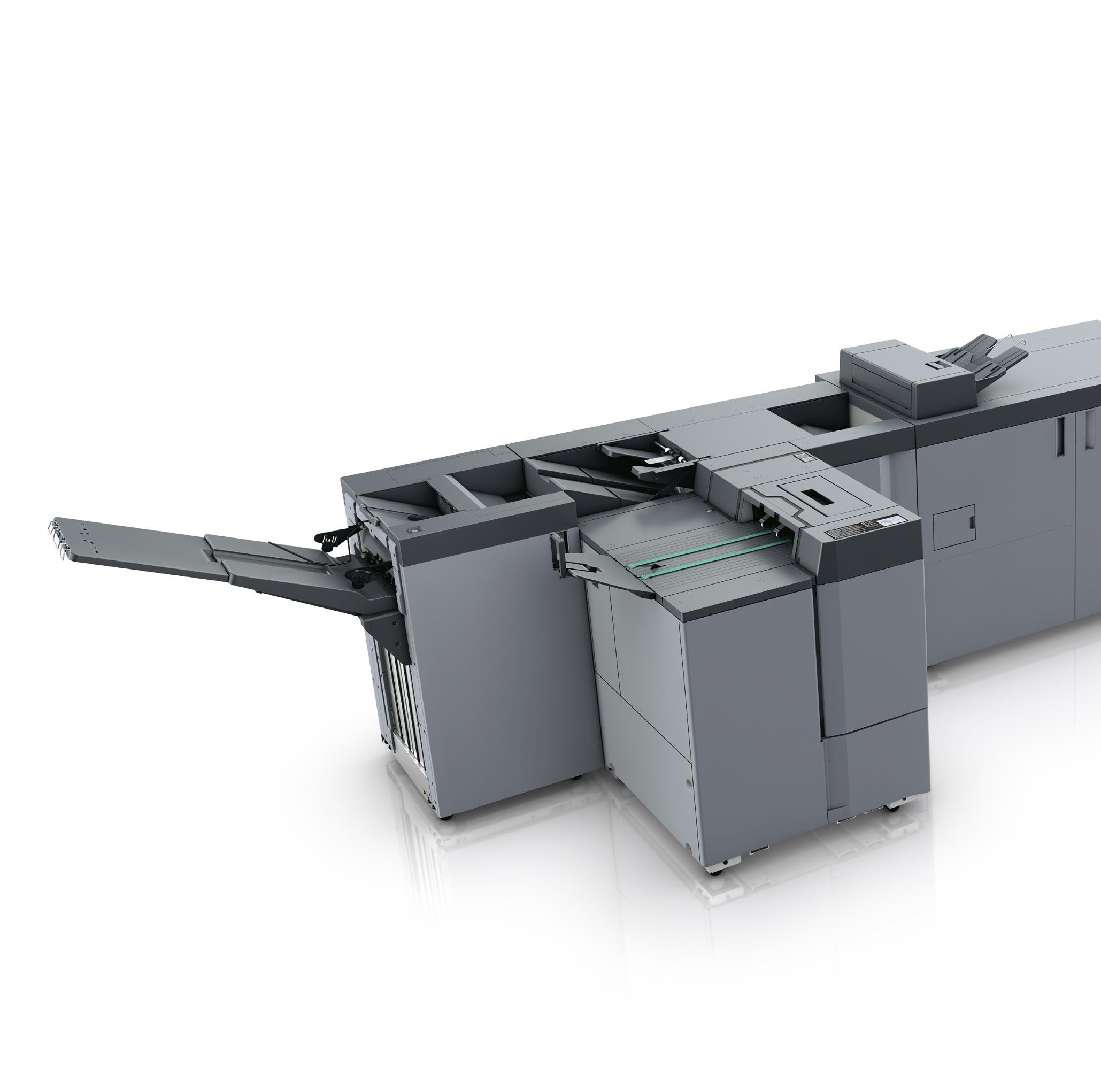 L'unité de découpe 4 bords TU-510 en ligne (en option) coupe, plie et perfore pour produire de superbes couvertures de livres à fond perdu, cartes postales, cartes de visite, coupons et autres documents. La suppression du besoin de finition hors ligne signifie moins d'interventions de l'opérateur pour des tirages plus rapides et plus efficaces.