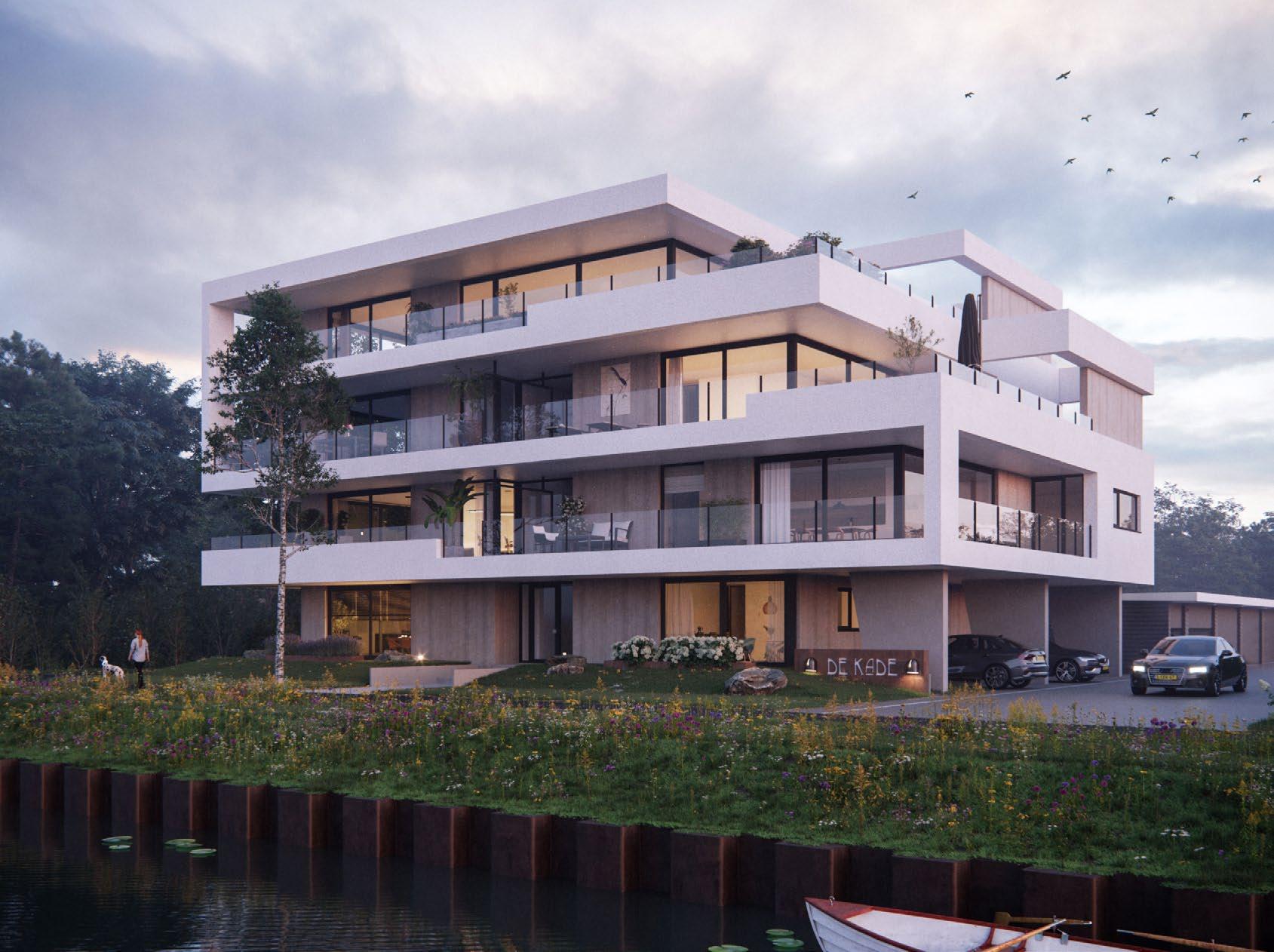 De Kade is gelegen aan het water op een historisch terrein, waar een voormalige bedrijfslocatie wordt getransformeerd tot een hoogwaardige woonomgeving. Het project omvat vier bouwlagen met in totaal zeven luxe appartementen, waaronder een exclusief penthouse dat de kroon op het werk vormt. Elk appartement is met oog voor detail ontworpen en biedt ruime terrassen met uitzicht op het kanaal. Hier wordt wonen aan het water de nieuwe norm voor exclusiviteit.