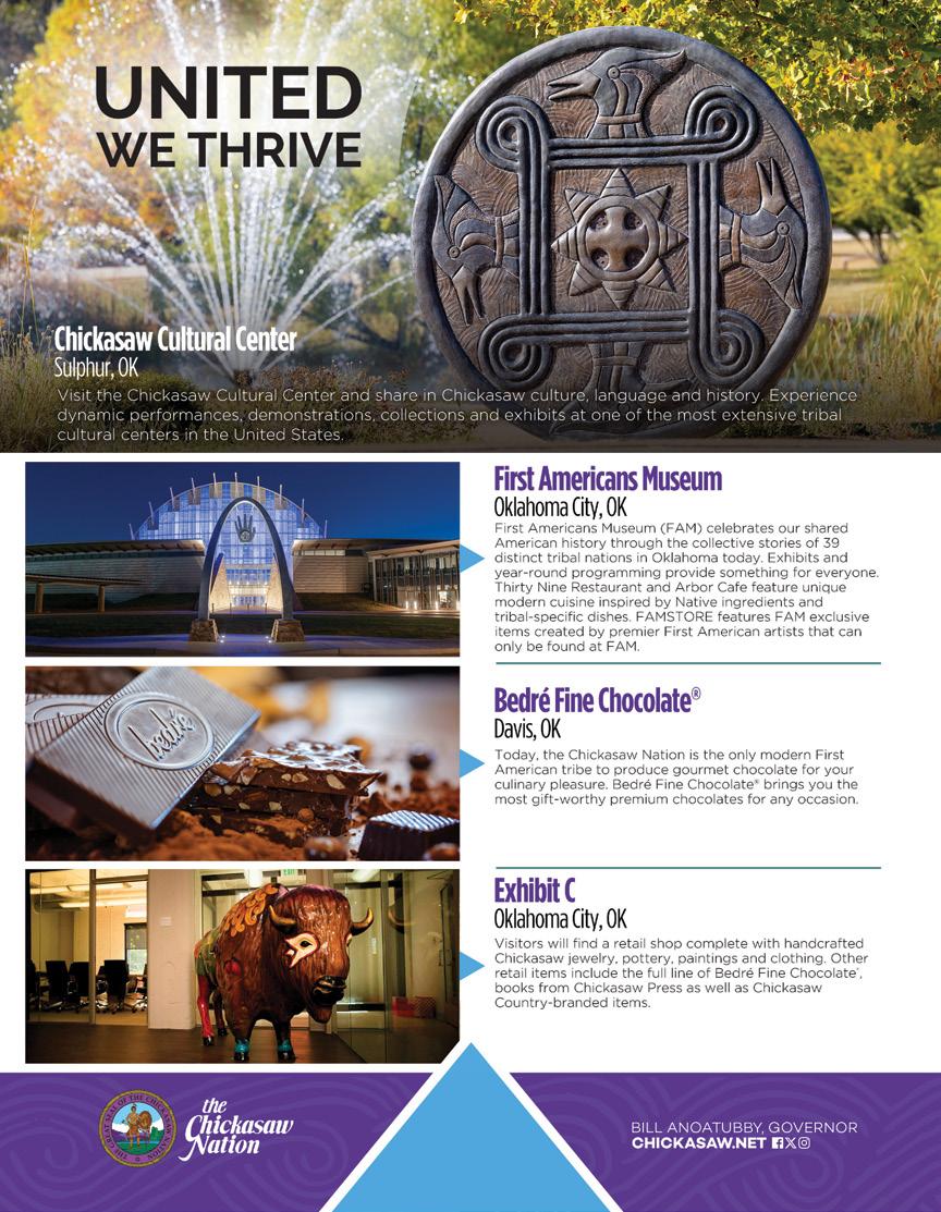 Red Earth Art Center is a Native American art and cultural hub in Oklahoma City, using extensive collections, exhibitions, programs, and events to showcase Indigenous artists. The First Americans Museum is a 175,000 square foot museum in Oklahoma City, focusing on Oklahoma’s current 39 First American Nations. The venue shares the cultural diversity, history, and contributions of First Americans, and includes numerous amenities and programs.