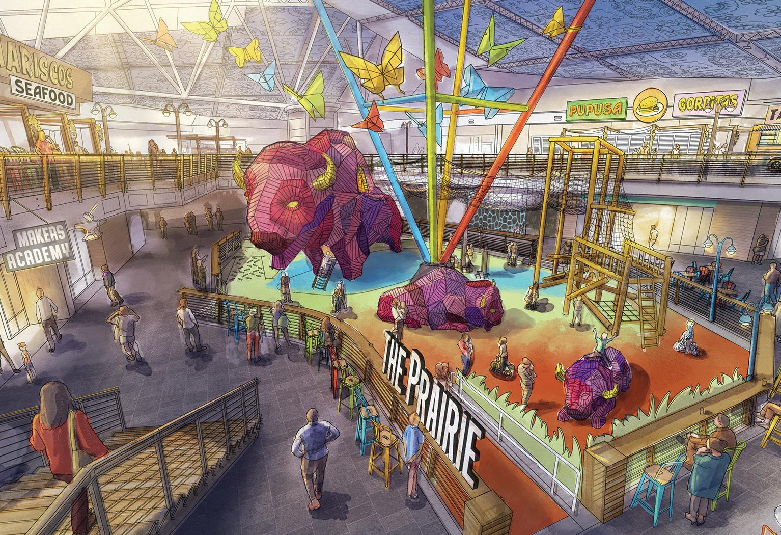 Now largely a vacant space, the Crossroads Mall in Oklahoma City is partially occupied by the Santa Fe South Charter Schools, and was purchased by the nonprofit Crossroads Renewal Project, led by school superintendent Chris Brewster. With the help of Storyland Studios, a firm specializing in strategy, architecture and design, the vision for the space is a community-focused redevelopment with housing, retail and educational offerings.