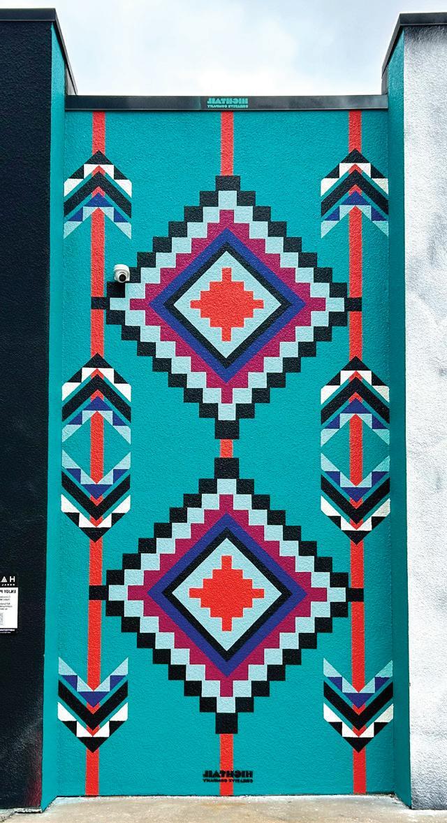 Autumn, a basketball court installation commissioned as a public art iteration of the Neuf painting series by renowned artist Hock E Aye Vi Edgar Heap of Birds. oklahomacontemporary.org