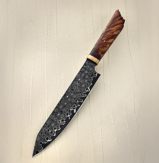 “When I found metal work and forging, it just felt right,” says Shropshire, who began making knives as a hobby two decades ago. “The shop is hot in the summer, cold in the winter and usually doesn’t smell too good. But it’s where I feel most comfortable.”