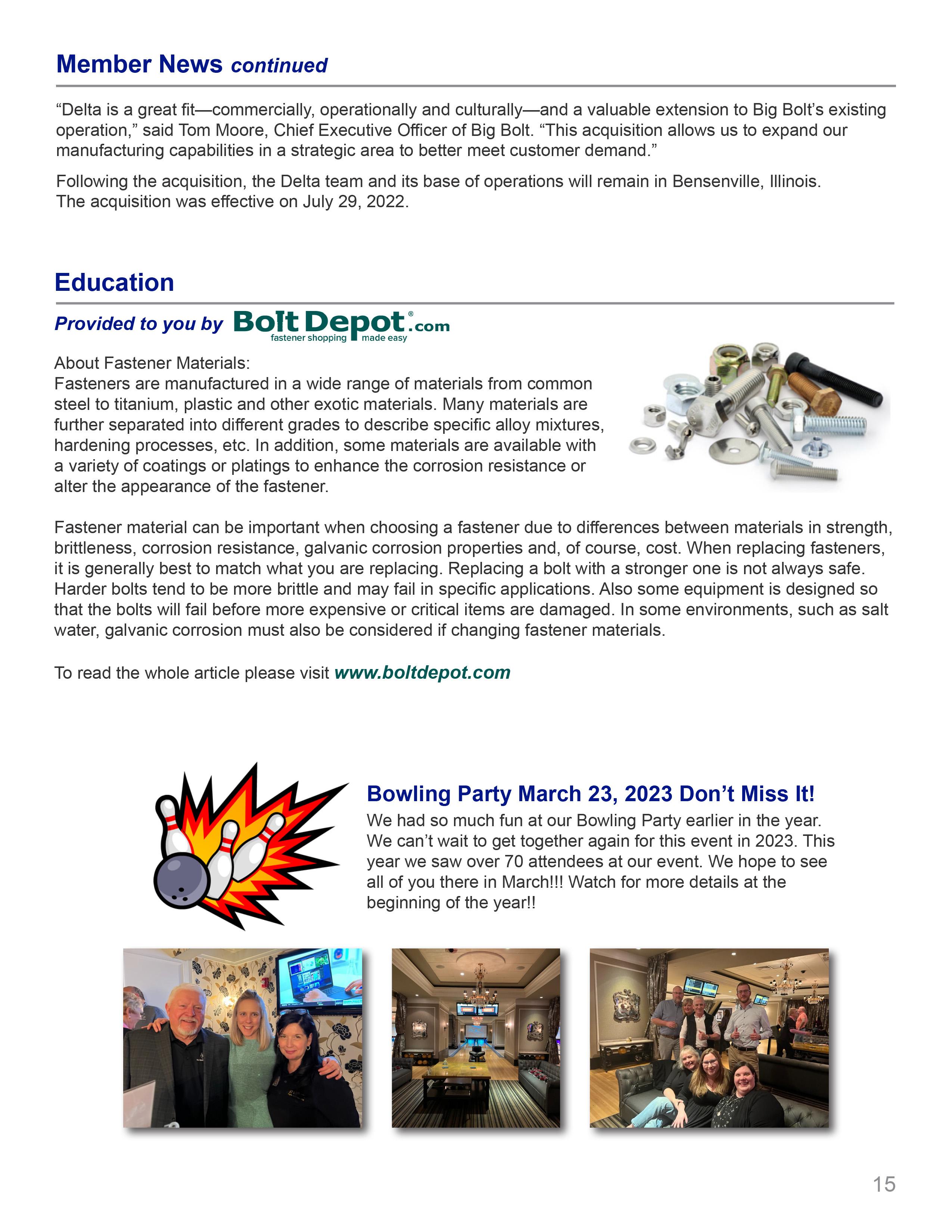 Our mission is to advance interest in the Fastener Industry by promoting the distribution of fasteners through those who will uphold the image of the industry.