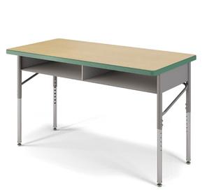 Desks available in Spray Edge, Hard Plastic, and Hard Plastic Compact Laminate (HPCL). See website for more details.