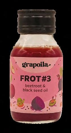 FROT#3 is a unique combination of some of the most nutritive and effective, traditional herbs on earth. The wholesome beetroot and the carrot sweetened with apple puree makes a great fundation, that is supplemented with one of the most sought-after cold-pressed oil. The Black cumin seed oil is a powerful, antient herb with proven immun supporting, antiinflammatory, antiviral, antibacterial and antitumor effects, but it has a subtle yet distinctive taste. The black cumin seed oil blended in the favorable, sweet fruits, has this way become milder and easier to consume.