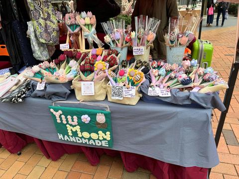 參加者同時出售⾃家製作的產品 及⼊貨產品。⽽墟市出售產品的 種類⼗分多元化,當中飾物、鉤 織、布藝、環保⽤品、及盆栽等 等為主要產品類別。