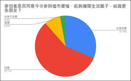 3. 就參與墟市活動能夠擴闊⽣活圈⼦、結識更多朋友,當中合共超過8成半 (88.5%)的參加者表⽰同意(57.1%)或⾮常同意(31.4%)。