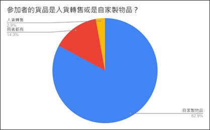 於墟市當中,超過8成(82.9%) 的參加者均出售⾃家製作的產 品,有接近1成半(14.3%)的