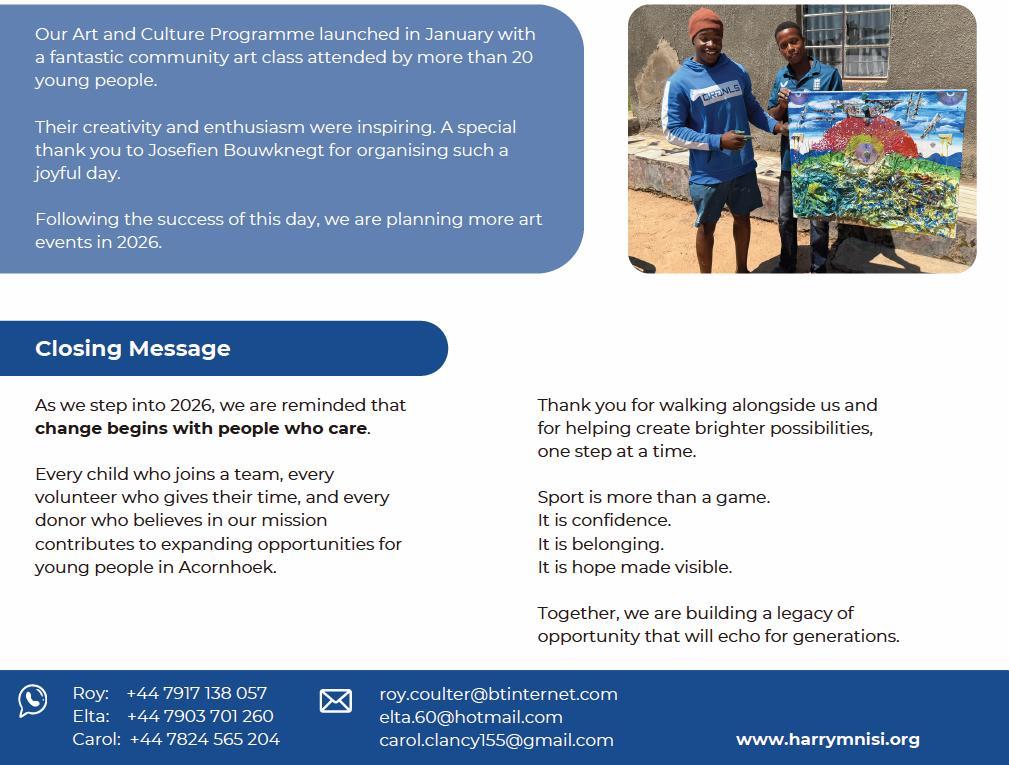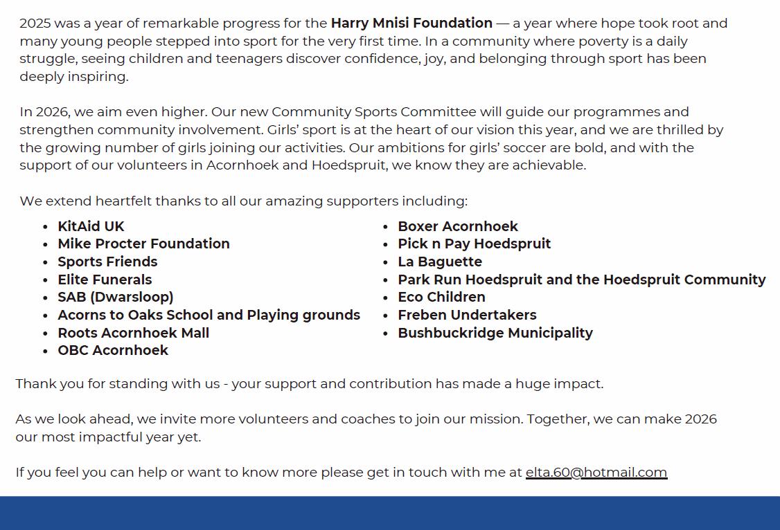 We would also welcome your support for the KitAid submission to the Smiley Charity Film Awards. Our submission appears in the under £100k category - the title is the 'Harry Mnisi Sports Day'. You can access permission to vote for the KitAid entry at https://smileycharityfilmawards.com/2026 /films/category/0-100000