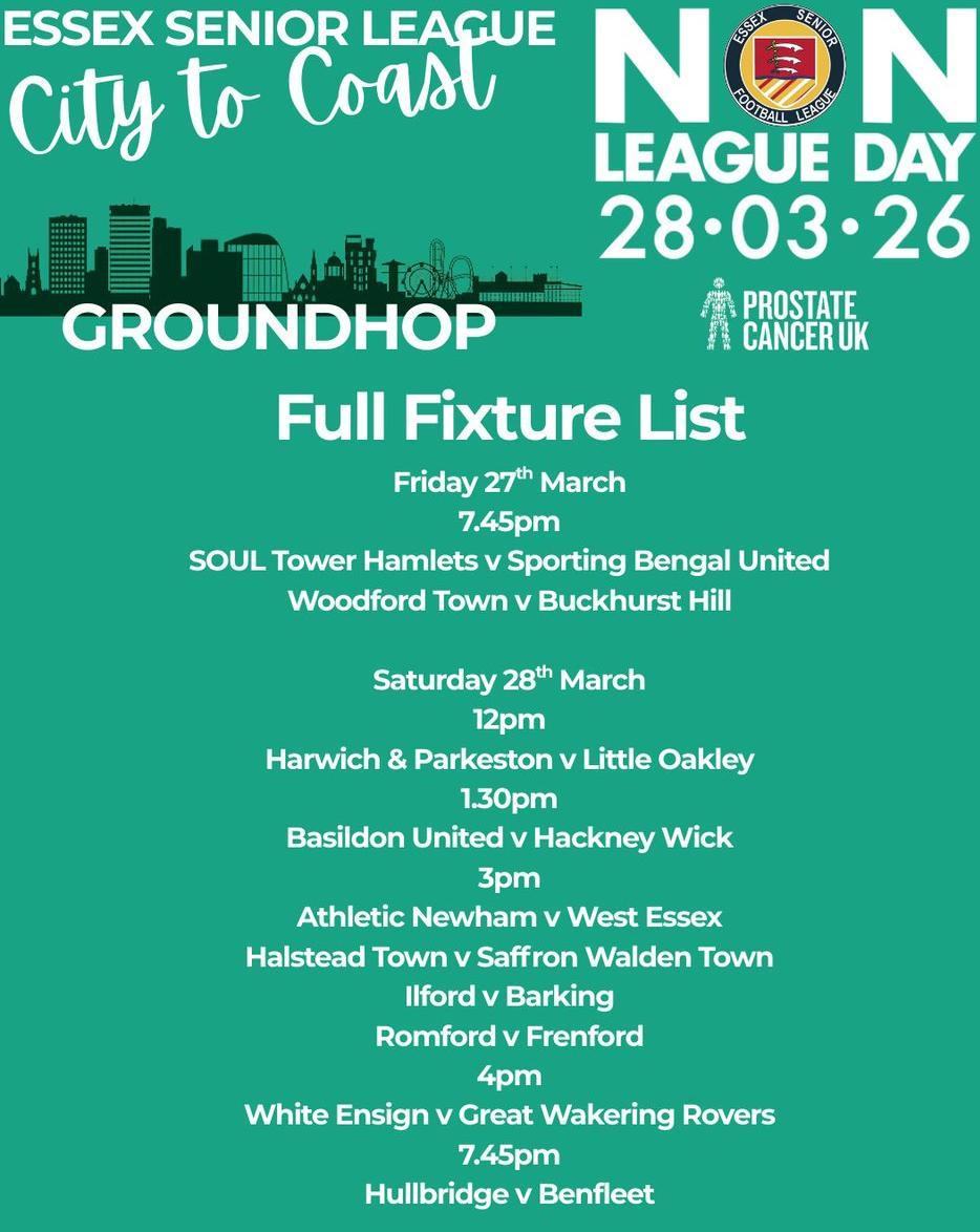 The Essex Senior League (ESL) are proud to announce the return of its highly anticipated Non-League Day Groundhop. This year, the league is taking fans on a unique "City to Coast" journey, offering the rare opportunity to experience the magic of grassroots football with the potential to catch four matches in just 24 hours.