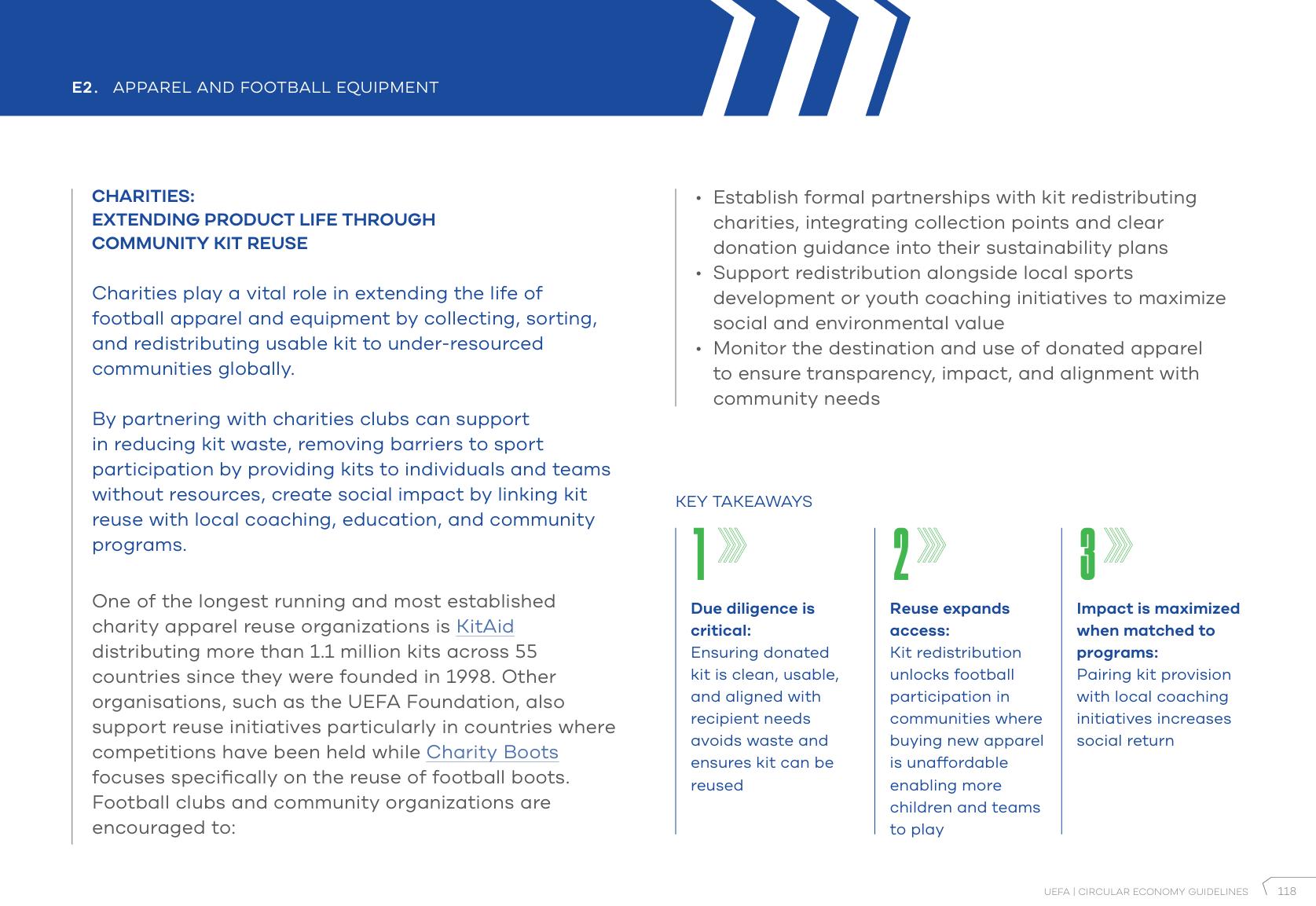 Across Essex the commitment to effect the changes required grows, led strategically by the Essex County FA, local authorities, clubs and community organisations. Acknowledged in the UEFA guidance at p118, KitAid is also keen to play its part in regard to all domains, but of course has most to offer in relation to support for apparel & football equipment and kit reuse.
