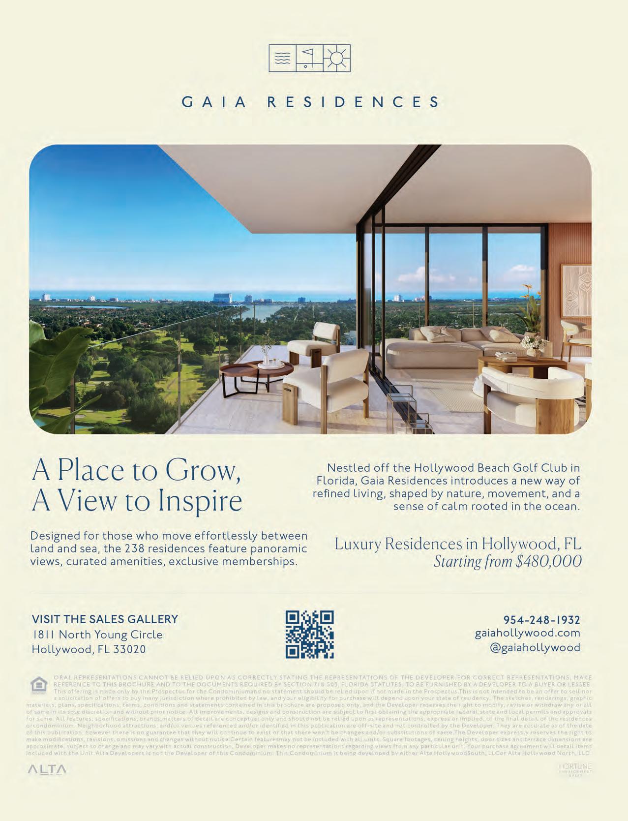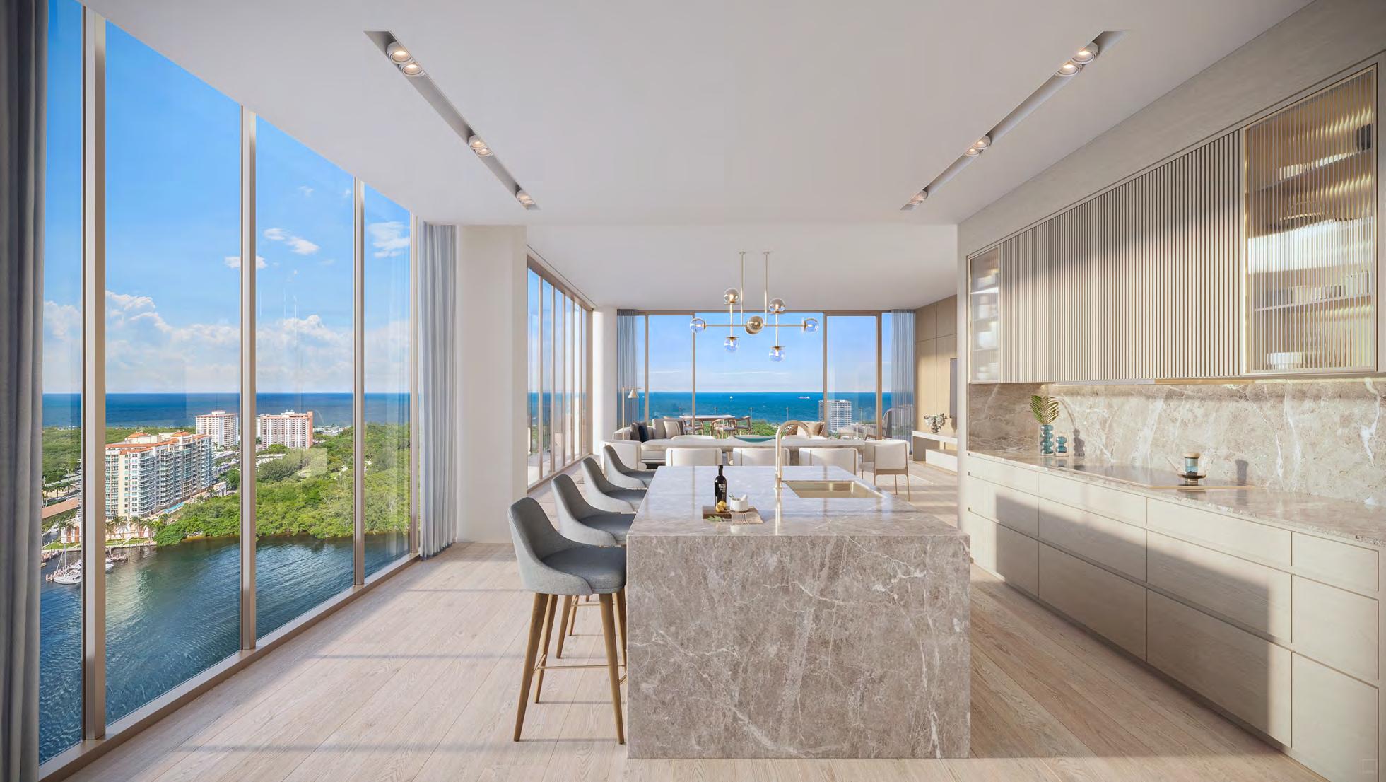 WHY IT’S SPECIAL: The Residences are being cra ed by an awardwinning design team including Nichols Architects, KORA, BAMO and Enea Landscape. The result is a property that seamlessly balances world-class design, modern amenities and Waldorf Astoria’s legendary service ethos. Inside, thoughtfully curated interiors complement sweeping ocean and Intracoastal views, while outdoors, lush landscaping and expansive terraces connect residents directly with their natural surroundings. The o ering is further elevated by a limited Penthouse Collection of four residences, each de ned by expansive wraparound terraces and uninterrupted ocean views that deliver an added level of privacy and exclusivity. With more than 75% of residences already sold, the project is set to become a de ning address for Pompano Beach when it delivers in 2027.