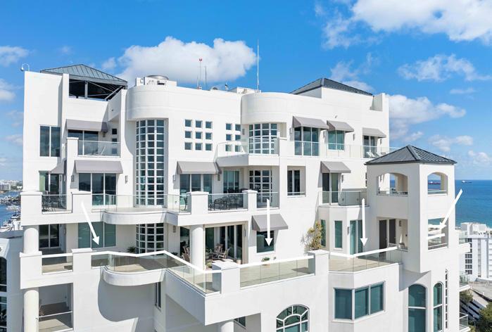 Inspired by a new level of luxury, this turnkey, fully furnished penthouse comprises 4,295 square feet of space under air and 5,345 total square feet, 3 bedrooms and 3.1 baths, with breathtaking views over the ocean, Intracoastal Waterway and city skyline views through oor-to-ceiling walls of glass that invite an abundance of natural light over the open oor plan and multiple living spaces. Striking architectural details, curated nishes and state-of-the-art lighting provide a sophisticated lifestyle. Expansive terraces with a summer kitchen