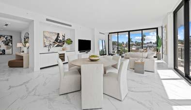 WHY IT’S SPECIAL: As the area’s rst ve-star branded residence, the picturesque village is doubling down on its luxurious reputation, with Related Group and Dezer Development at the helm. With architecture by world-renowned Arquitectonica and the acclaimed Dutch design rm Studio Piet Boon overseeing the interiors, the waterfront property has been cra ed to stay true to the Rosewood brand. Both buildings have been designed to be reminiscent of a regal yacht, blending the indoors and outdoors with so , curving terraces, ample natural light and sprawling exterior spaces. Inside, a so color palette will envelop the units and shared spaces, all of which will showcase an interesting mix of textures including natural wood, limestone accents and biophilic elements.