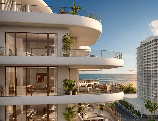 DETAILS: Designed by Miamibased Swedroe Architecture with interiors by Adriana Hoyos Design Studio, the 14-story development o ers three- and four-bedroom residences ranging from 2,100 to 2,800 square feet, with exible layouts including options for dens and convertible con gurations. The building also includes two exclusive penthouses with private roo op terraces, each measuring approximately 4,000 square feet. The building’s lobby will feature approximately 1,300 square feet of retail or restaurant space, envisioned as a future café, bistro, or wine bar that complements the neighborhood’s walkable charm. Residences include expansive terraces with outdoor summer kitchens, private elevators, oor-to-ceiling glass, and panoramic views of the ocean and Intracoastal Waterway. Each residence will also feature gas cooktops, highlighting true chef’s kitchens that, combined with the spacious oor plans and outdoor living areas, will make the building’s units feel like vertical homes in the sky. Natural woods, neutral palettes, and top-tier nishes create a modern coastal aesthetic that blends warmth with sophistication.