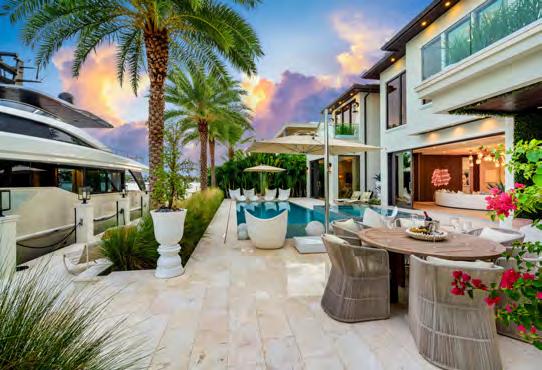STANDOUT AMENITIES: The standout amenities are what make this newly completed modern masterpiece exceptional. O ering 80 feet of deep water with southern exposure, a brand-new concrete seawall and dock built above the required elevation, and no xed bridges for quick ocean access, it’s a dream for yacht owners. Additional amenities include a private heated saltwater pool with spa, a Crestron control