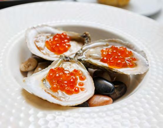 RIGHT: Babette’s citruskissed take on Blue Point oysters, finished with ikura and finesse, page 54.