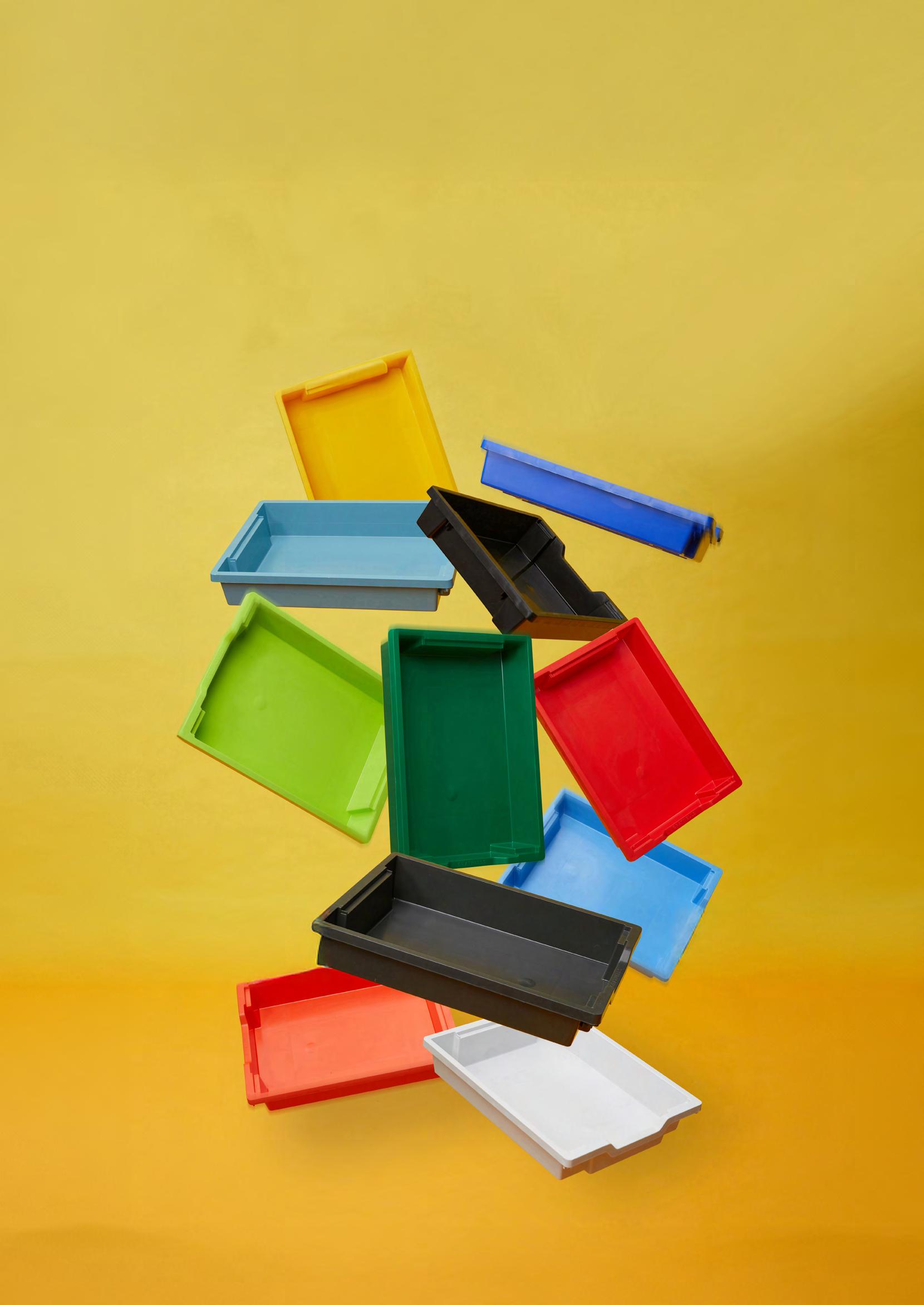 Our robust, colourful trays are sustainable, fully recyclable, and built to last a lifetime. In fact, one tray can see a student through their entire school journey.