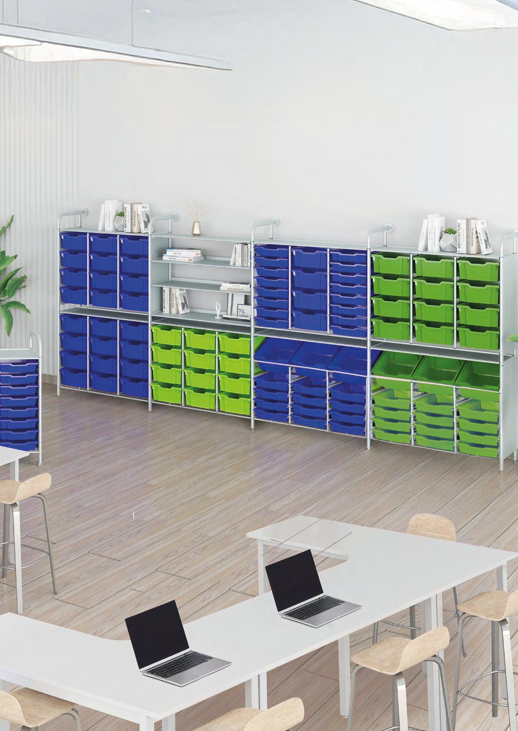 Build up or build across to make your space work. You can create anything from a cosy library to a full-height, comprehensive resource centre. You can mix and match tray units with shelving, for example, to provide a learning area that contains everything students require for their lesson