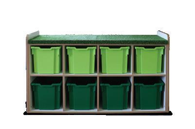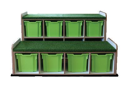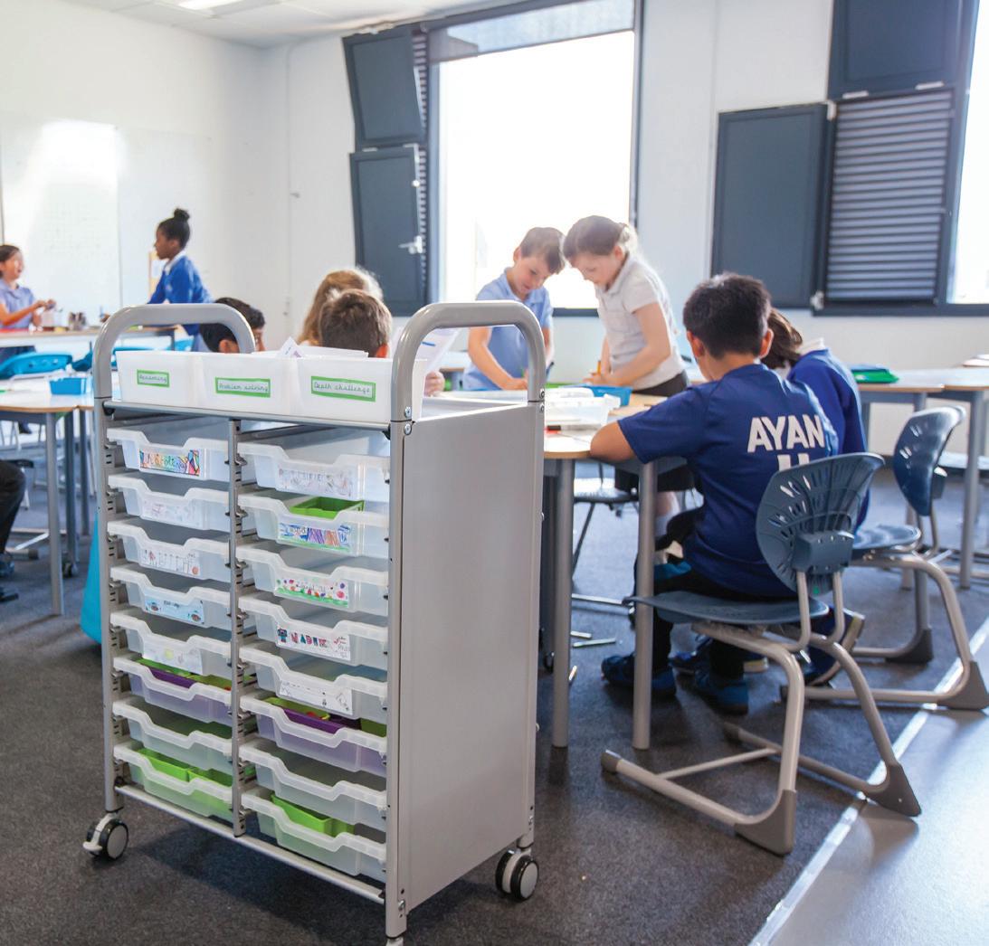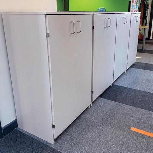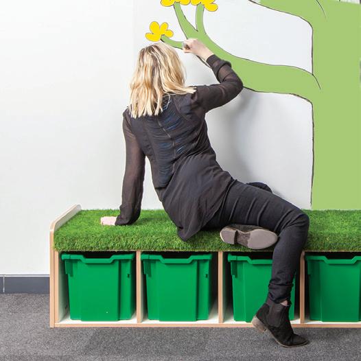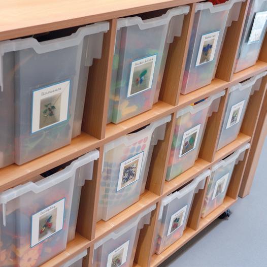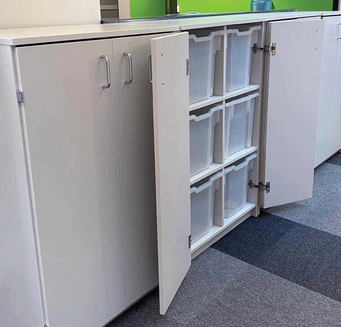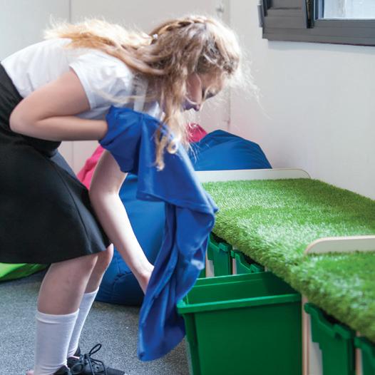 manage their belongings. Spacious rigid containers enable pupils to dip in and out without fiddling with sections of bags or getting past coats on pegs. The kit cupboard encourages learners to take responsibility for their own belongings.