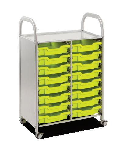 Double column trolleys come with four different tray sizes/depths and multiple colour options. Available as a treble column trolley with taller Callero Custom units for high density storage.