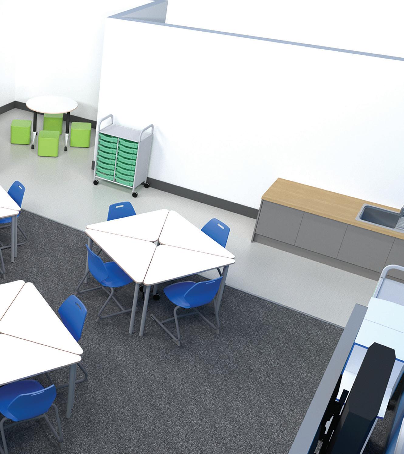 maximised unused space in a standard sized UK classroom of between 56m2 and 63m2 on a limited budget