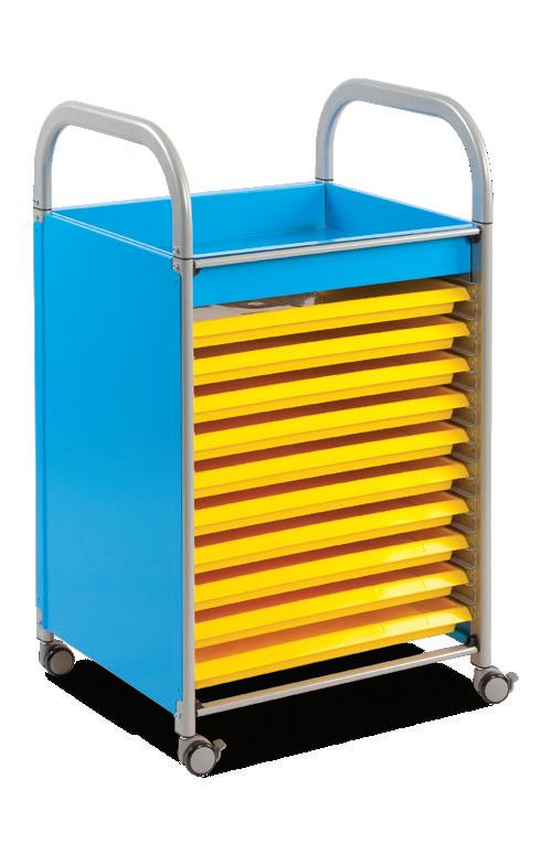 Trays are secured into place with a handy strap to ensure no accidents on your journey around school. Special inserts for added protection are available for the trays, as are lids to protect contents while in transit.