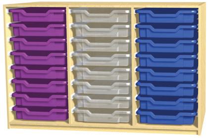 Wide wooden trays are suitable for the storage of many large science laboratory items. To