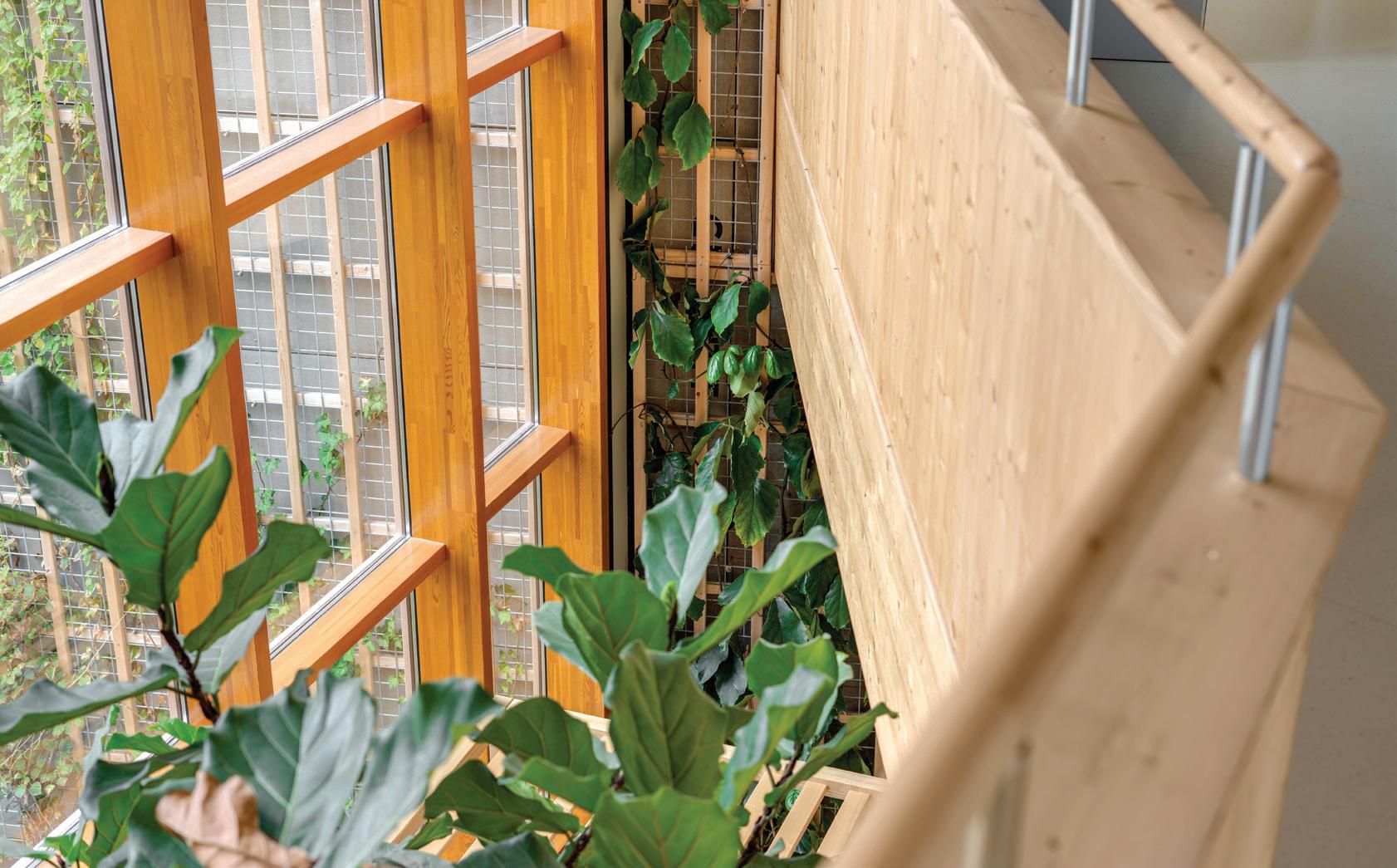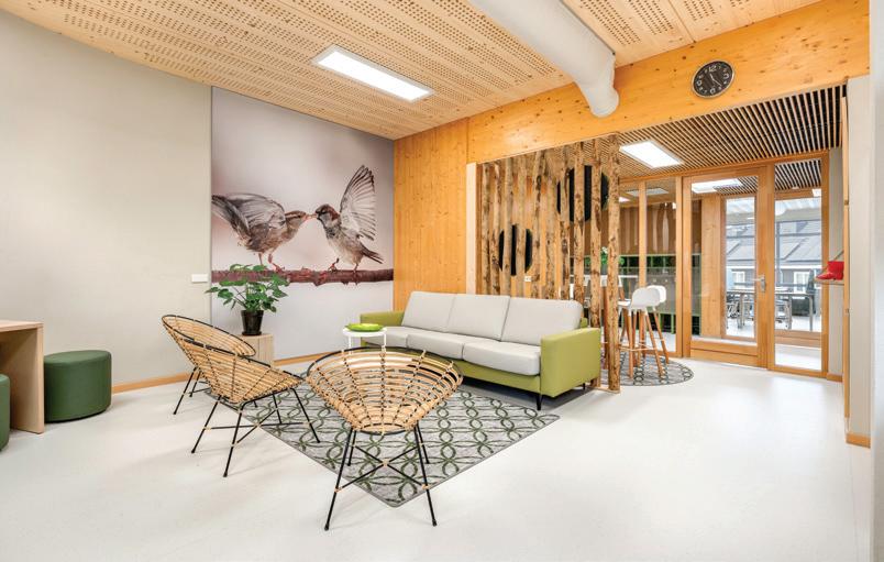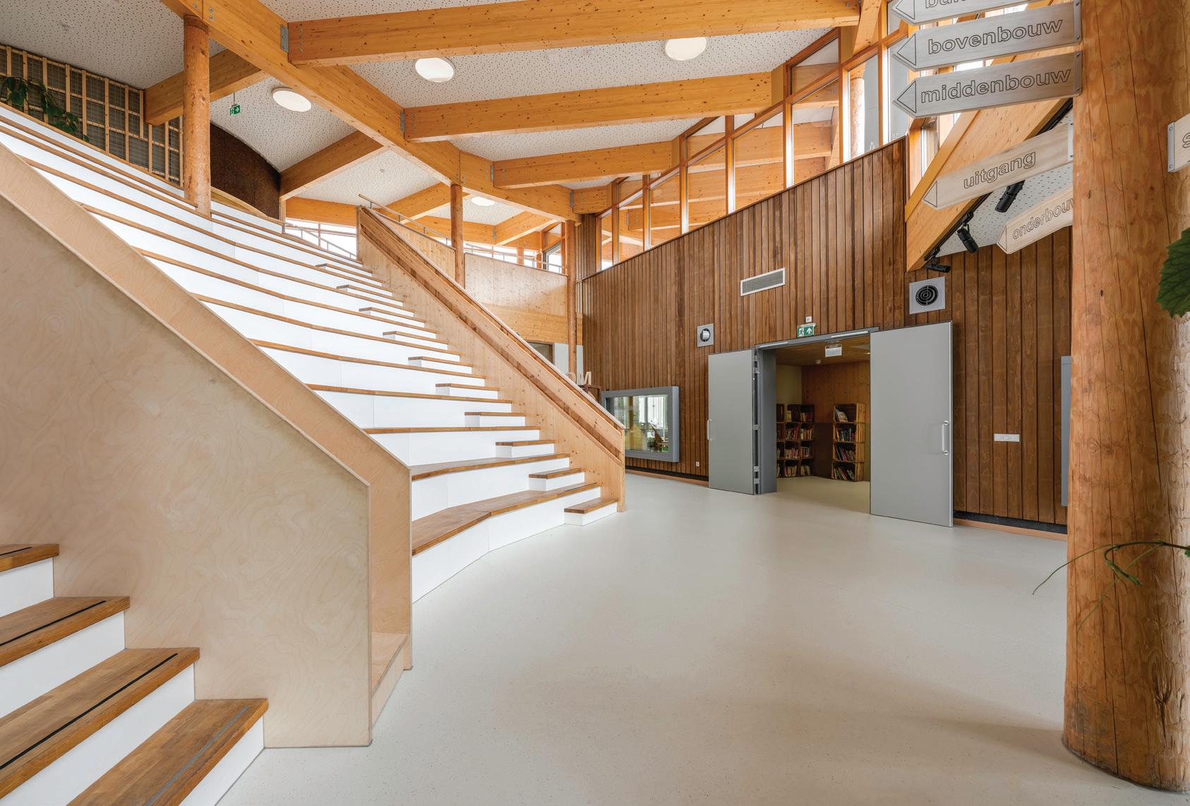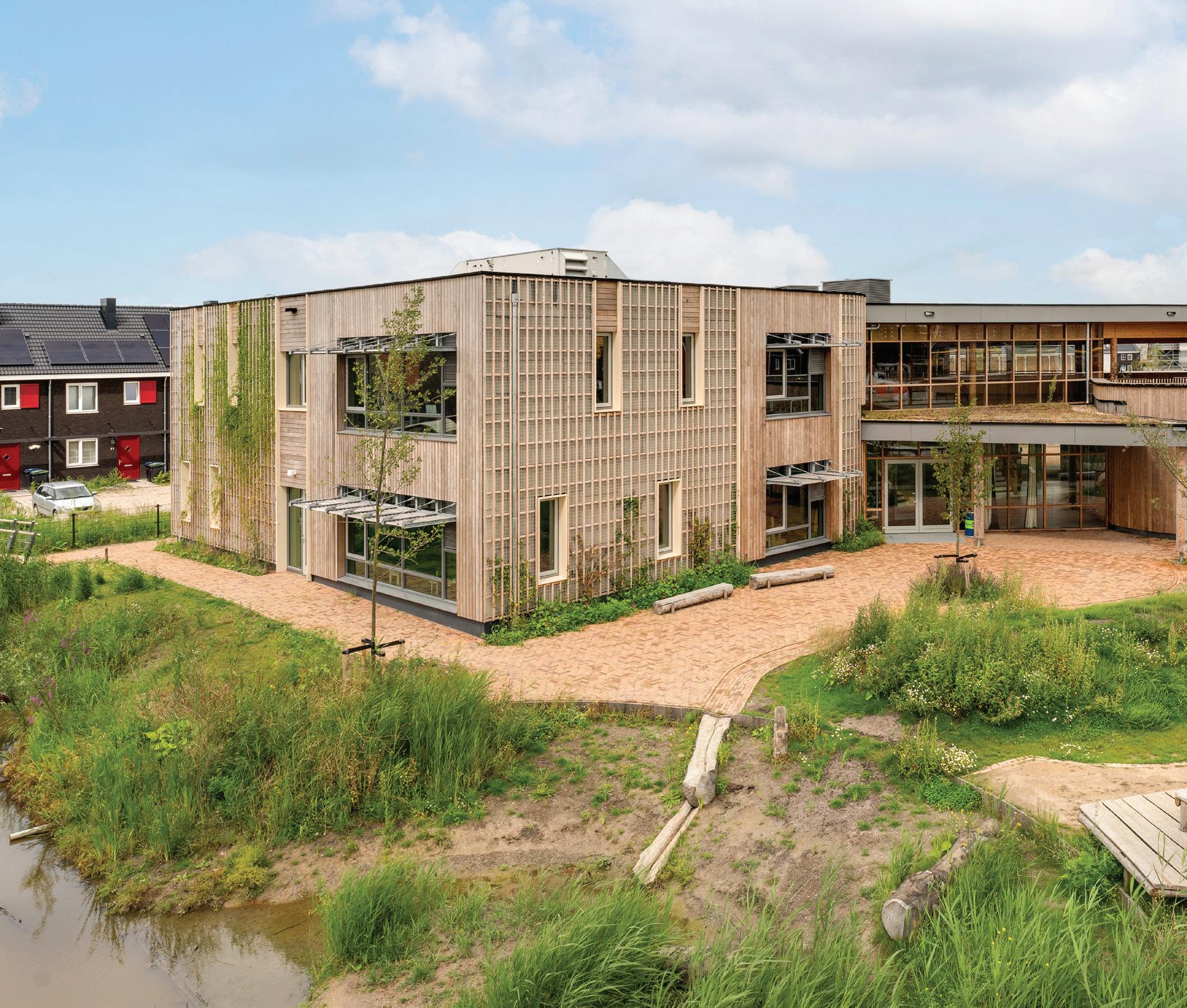 The importance of designing environments for learning that are more closely related to nature is explored through the work of ORGA architects at De Verwondering primary school in the Netherlands (p14). The school’s name translates as “a sense of wonder” or “amazement”, referring to the sensation of curiosity in children when they explore the natural world. The holistic design is reflected in the seamless connections between internal and external spaces and the material composition of the building. The presence of nature is more than visual in the interior design of the school and awakens all the senses, especially that of touch, smell and hearing. The outdoor classroom facilitates curriculum activity throughout the school year. The children exercise stewardship over the environment in which they live and learn, the produce they create and even the animals that live on the school grounds.