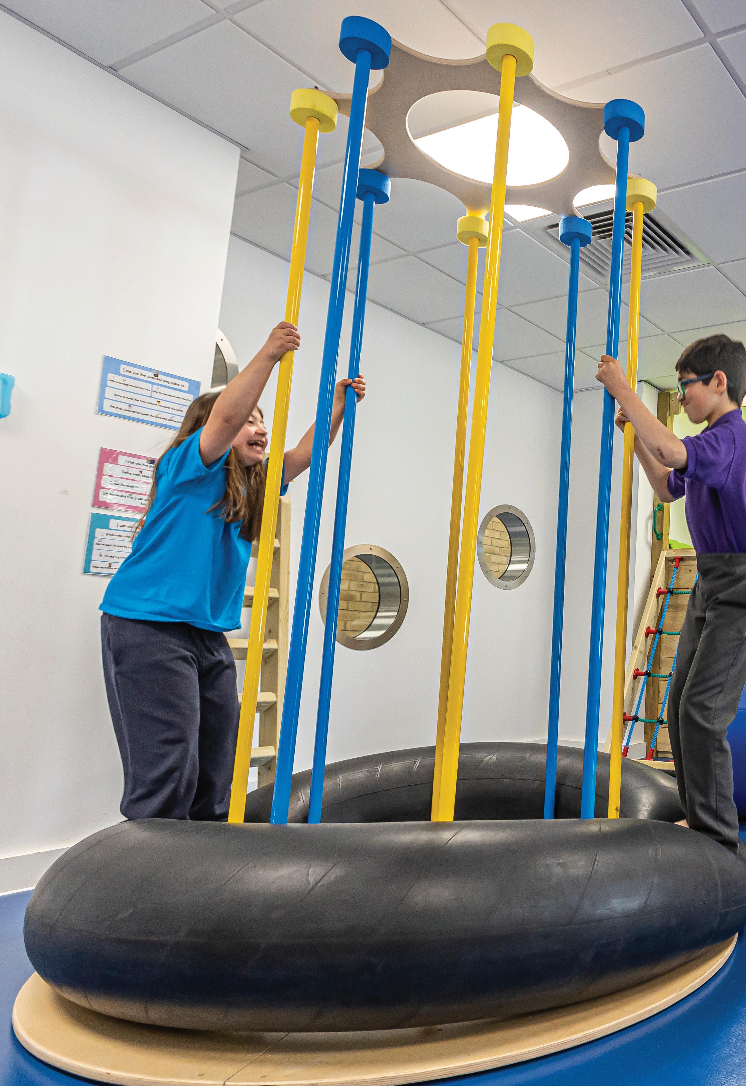 Having a dedicated occupational therapy (OT) space and two occupational therapists is having a massive impact. The OT room is open and engaging. It’s a room that is popular and that you want to investigate due to the porthole windows. This use of movement for living and learning is too often lost in the mainstream school and Gesher has much to teach the education sector. Art therapy is similarly valued, with the art therapist supporting art and design, circle time activities and the development of physical spaces. Therapy is contextualised within a clear global or generic need such as learning, communicating and focusing. By doing this therapy is normalised as a form of helpful learning.