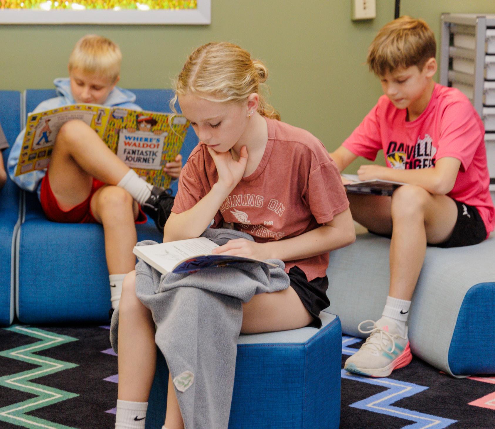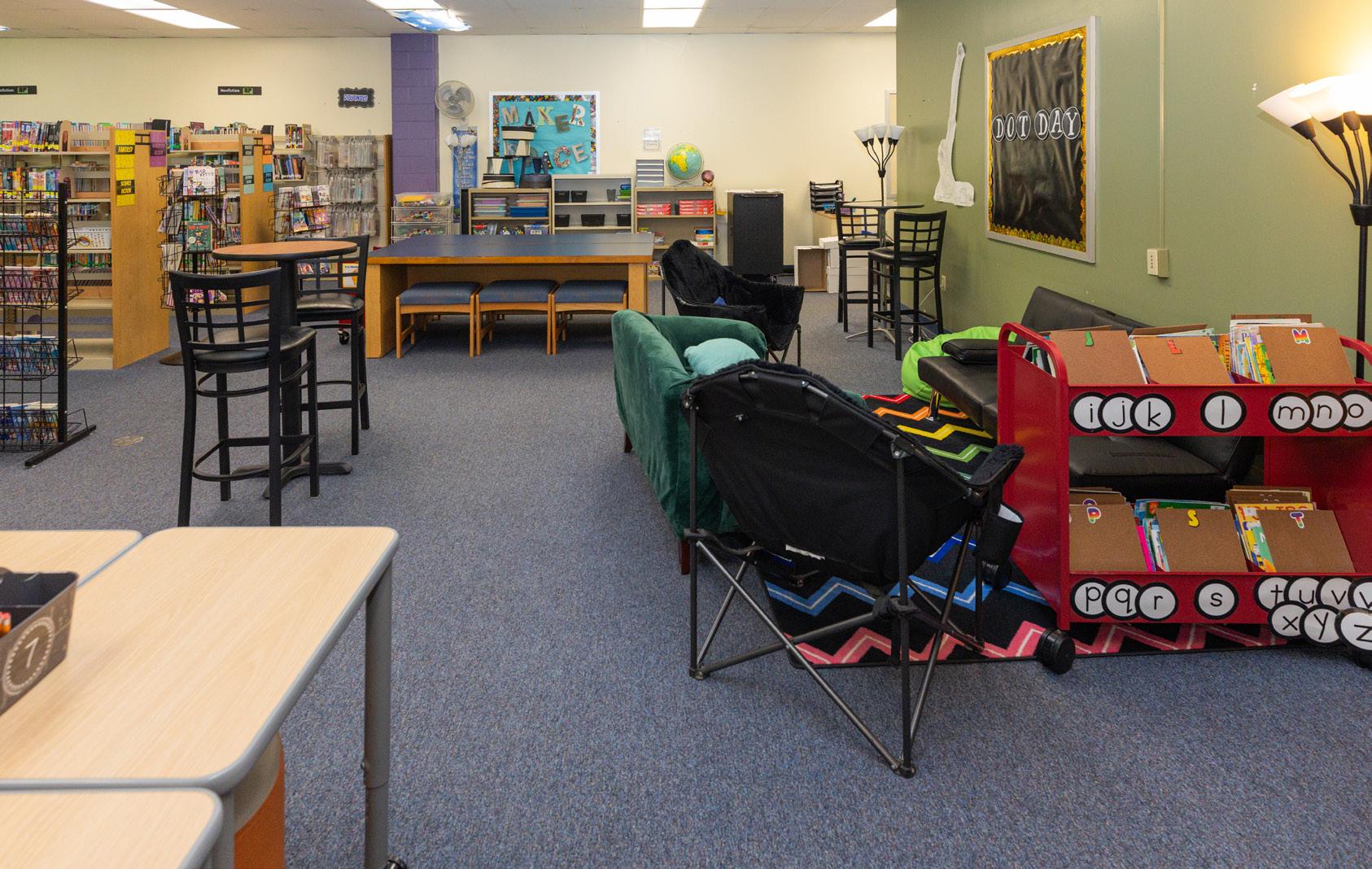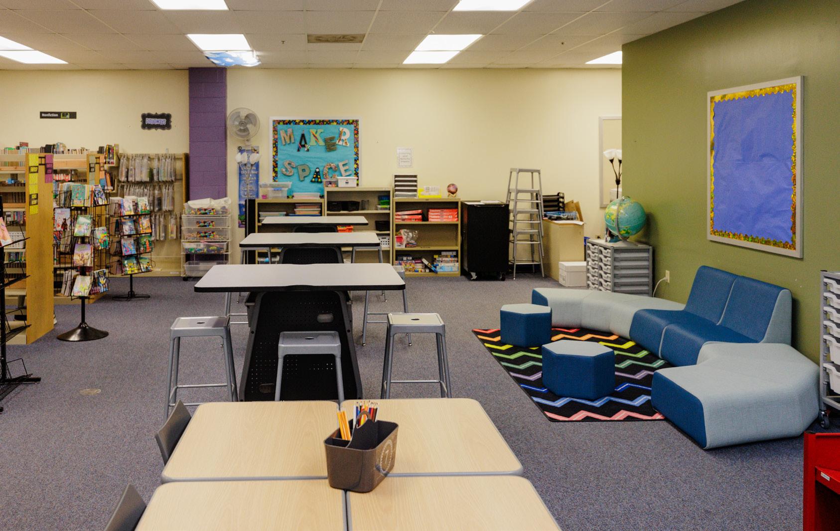 Lucy, a 5th grade student, said: “In the library it’s easier to work with friends because you can choose tables or comfy chairs, and in the hallway space you get to learn more with a teacher — both places make it easier to focus and collaborate.”
