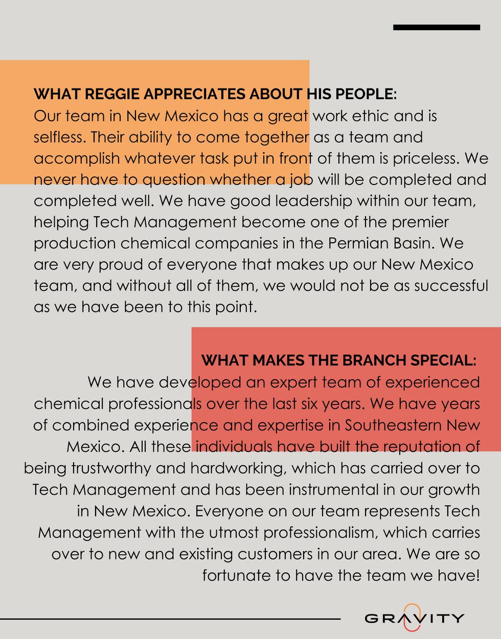 we're taking you to our New Mexico Tech Management Branch. Located in Artesia, our Tech Management team covers a vast area to care for our customers.