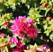 • Bougainvillea: There are several varieties of Bougainvillea, and we often see these shrubs with bright, magenta blooms. Another variety grows blooms that are a softer pink.