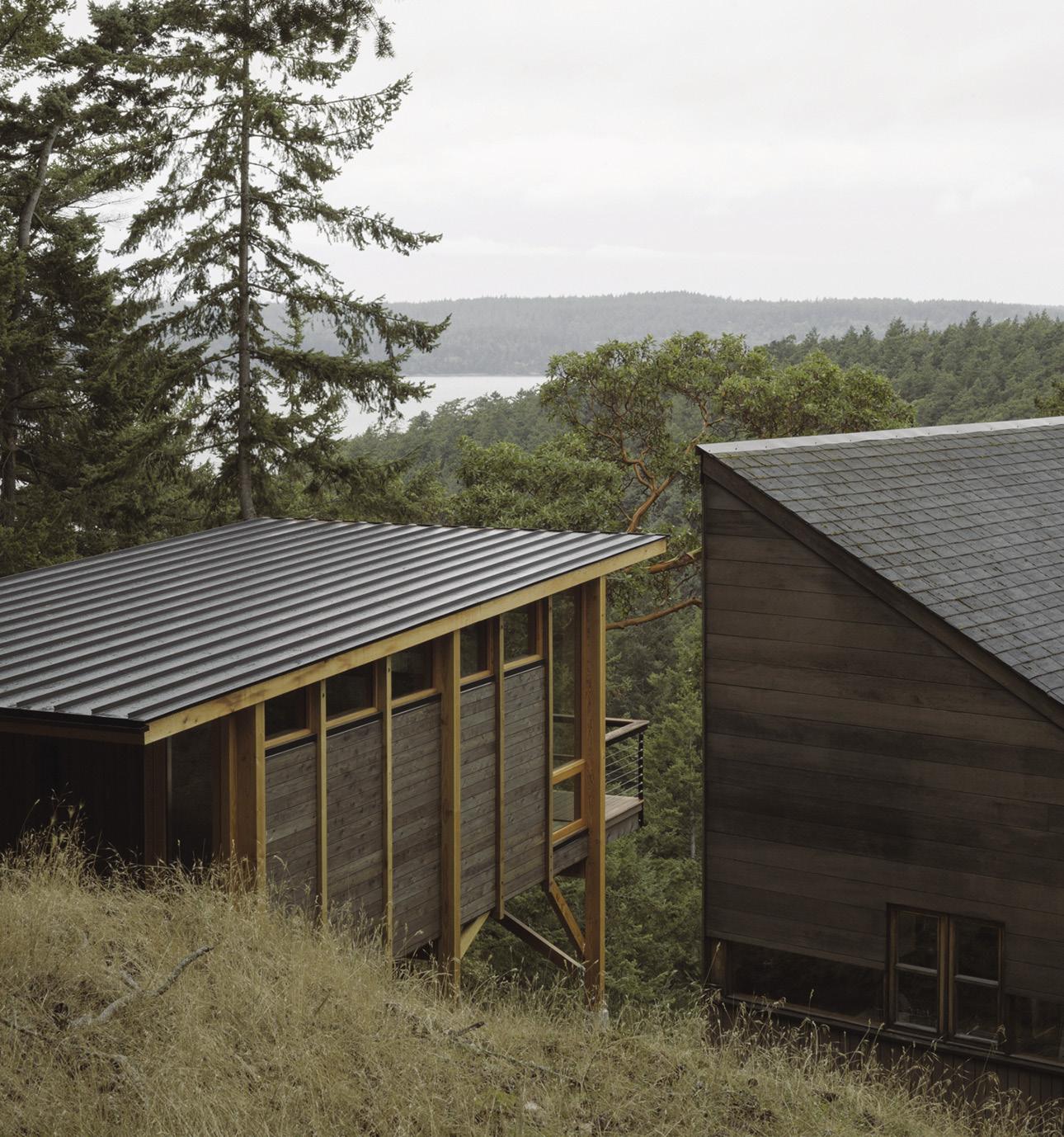 ABOVE: Pieces by Grain, a Bainbridge Island, Washington-based design studio that was Climate Neutral certified in 2020. OPPOSITE: Guided by a deep respect for the land, architecture firm Miller Hull erected this 400-square-foot bunkhouse next to the iconic Decatur Island Cabin, which was designed by Robert Hull, the firm’s late founding partner, in 1986.