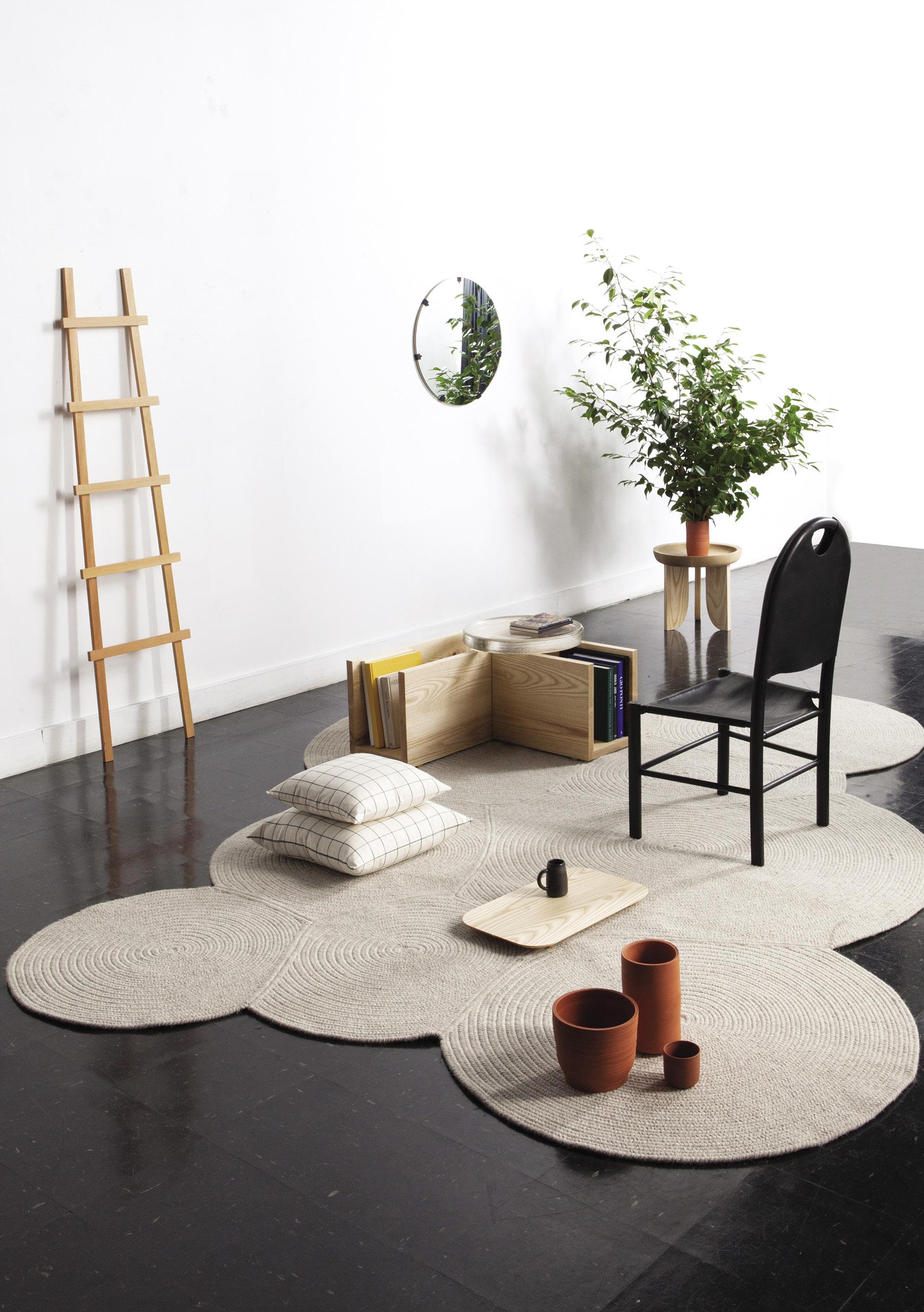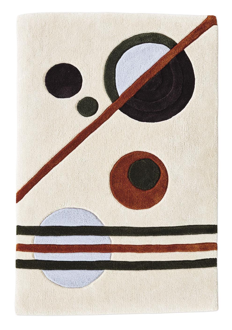 ABOVE: Midcentury Modern furniture and lighting designs remain in production today through companies such as Herman Miller and Knoll; the latter sells the Tulip table by Eero Saarinen and Cesca chairs by Marcel Breuer (both pictured). OPPOSITE: The Shine rug, designed by Claire McGovern for Rhyme Studio, is part of the Modernity collection, which pays homage to Irish designer Eileen Gray and abstract painter Kazimir Malevich.