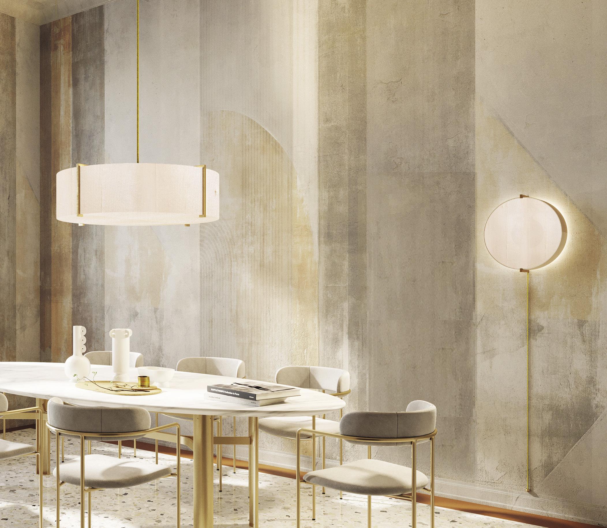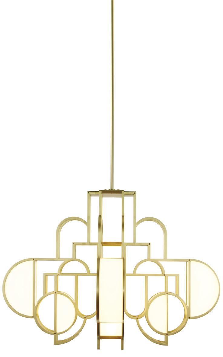 LEFT: The Moonrise chandelier from Roll & Hill is inspired by the lunar phases—its shape and materiality harken back to the Art Deco period.