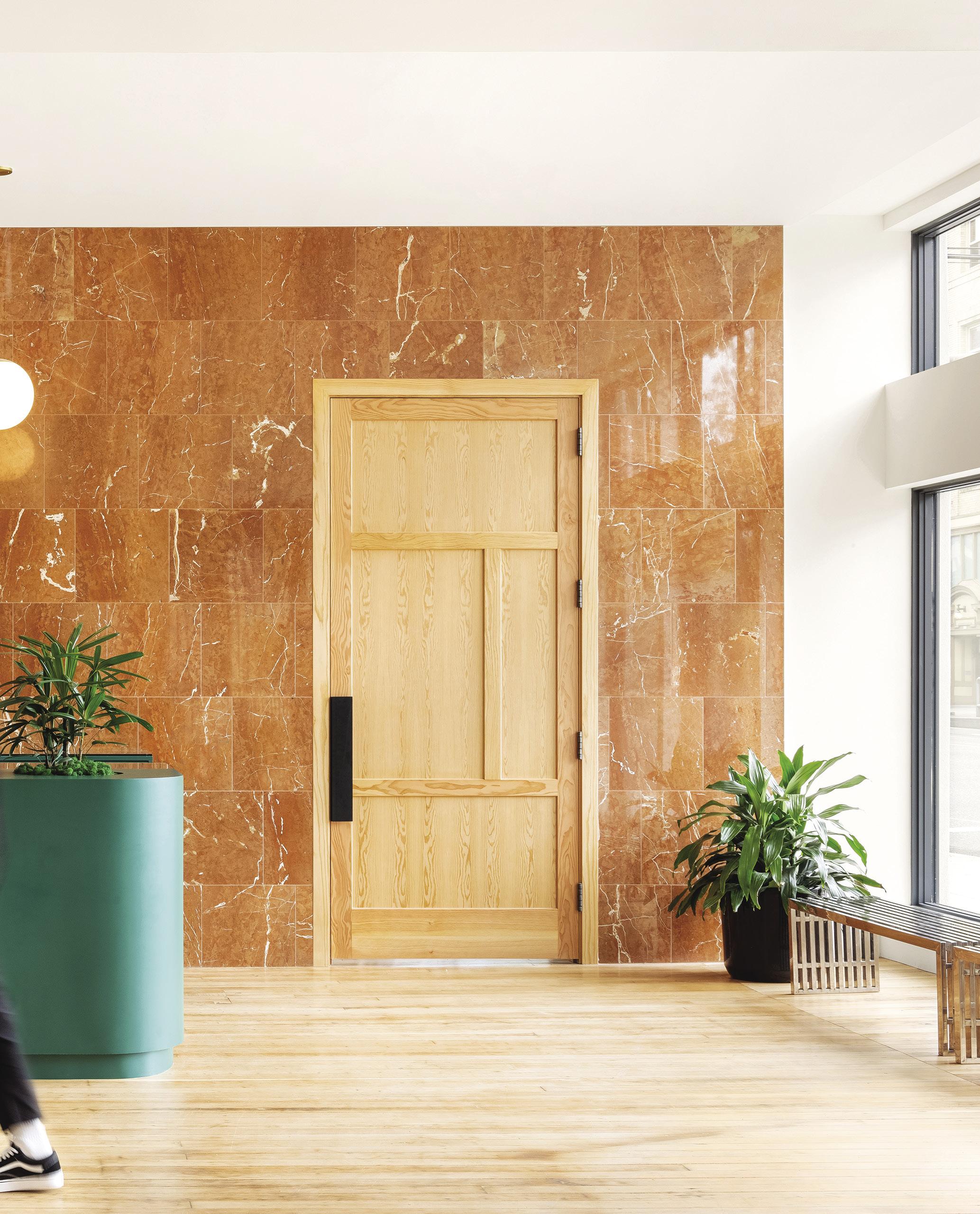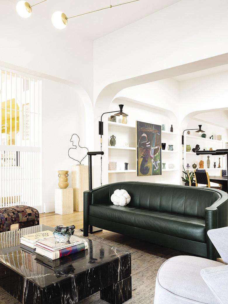 A local team—Works Progress Architecture, Urban Development + Partners, and Eric Cheong of North 45 Projects—came together with Palisociety to implement a full seismic retrofit, refinish historic windows and the brick exterior, construct a new roof, and build out the guest rooms. The on-property eatery, the Grand Stark Deli, is a refined and playful homage to the old-school delicatessen (think: checkered tile floor and glossy white counters), while Bar Chamberlain embraces the classic cocktail bar—made moody with a Northwest-inspired palette of dark-green and warm-gray paint colors. Public spaces also feature commissioned art from the local Nationale gallery, as well as vintage furniture and décor by local designers. “We wanted the spaces to feel as though you’re visiting an affable Portland friend’s loft— eclectic and approachable yet refined,” Cheong says. “The art and décor serve as a local guide to the vibrant and varied people, places, and things of the city.” »