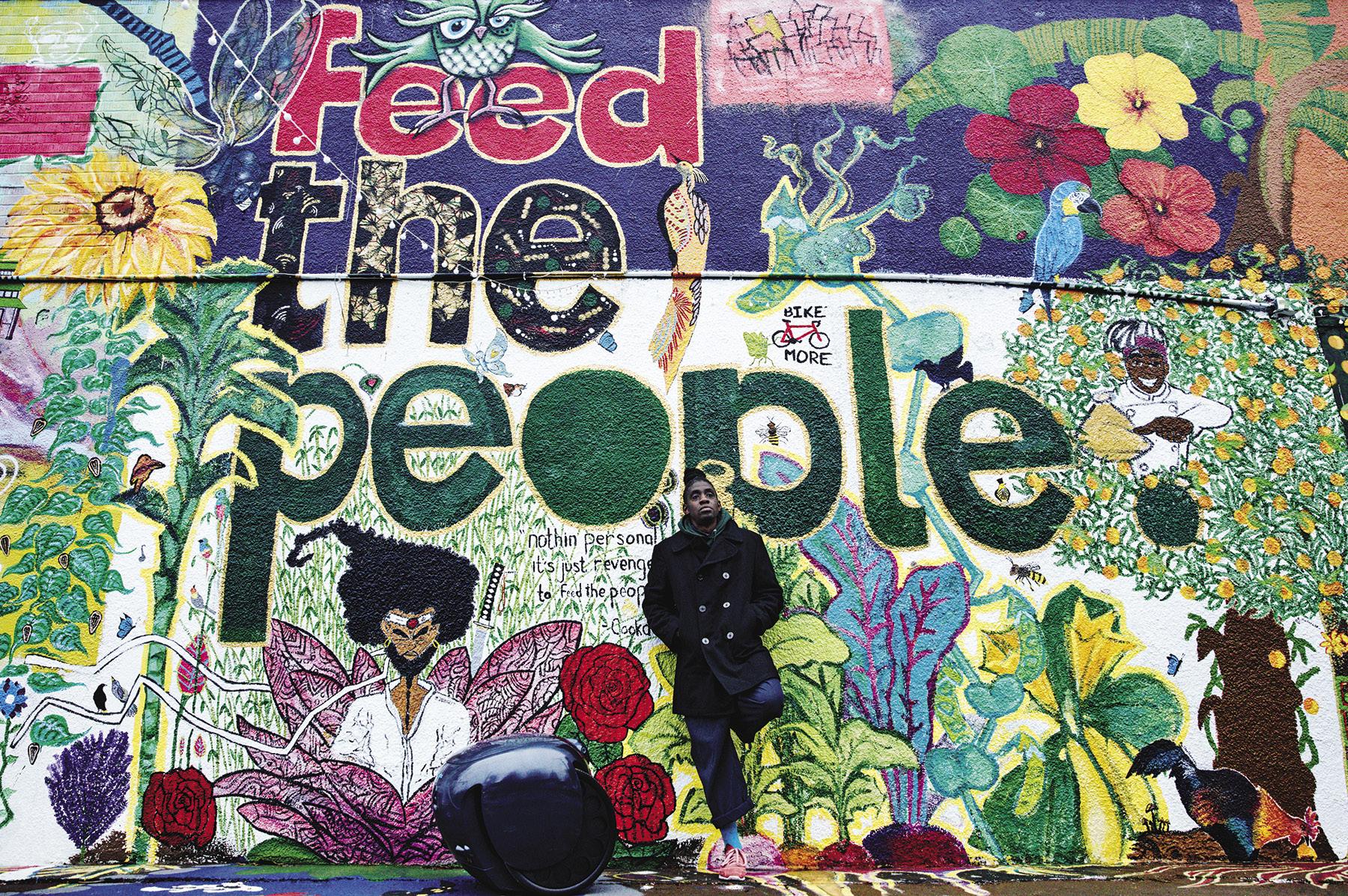ABOVE: Tarik Abdullah, chef and owner of Seattle-based community kitchen Feed The People, with a gita robot, the first consumer robot programmed to follow you while carrying your things. OPPOSITE: The gita robot can continuously roll for up to four hours.