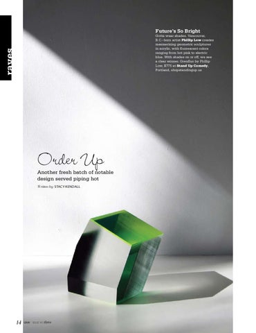 Gotta wear shades. Vancouver, B.C.–born artist Phillip Low creates mesmerizing geometric sculptures in acrylic, with fluorescent colors ranging from hot pink to electric blue. With shades on or off, we see a clear winner. Grenfluo by Phillip Low, $775 at Stand Up Comedy, Portland, shopstandingup.us