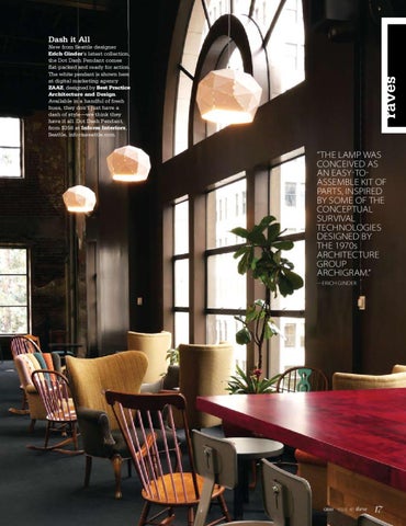 âThe lamp was conceived as an easy-toassemble kit of parts, inspired by some of the conceptual survival technologies designed by the 1970s architecture group Archigram.â âerich ginder