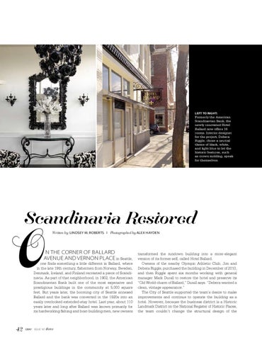 one finds something a little different in Ballard, where in the late 19th century, fishermen from Norway, Sweden, Denmark, Iceland, and Finland recreated a piece of Scandinavia. As part of that neighborhood, in 1902, the American Scandinavian Bank built one of the most expensive and prestigious buildings in the community at 5,000 square feet. But years later, the booming city of Seattle annexed Ballard and the bank was converted in the 1920s into an easily overlooked extended-stay hotel. Last year, about 110 years later and long after Ballard was known primarily for its hardworking fishing and boat-building men, new owners