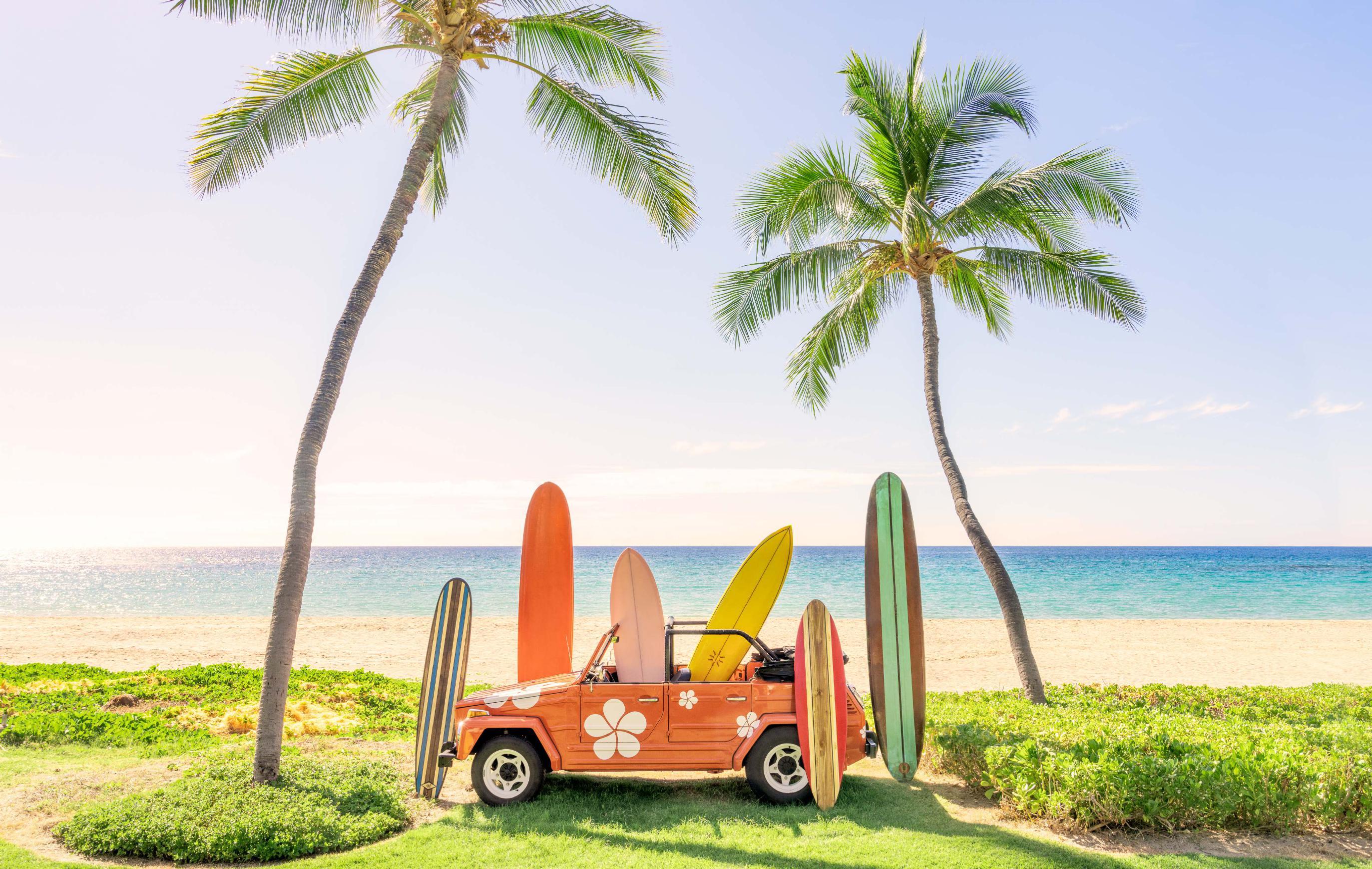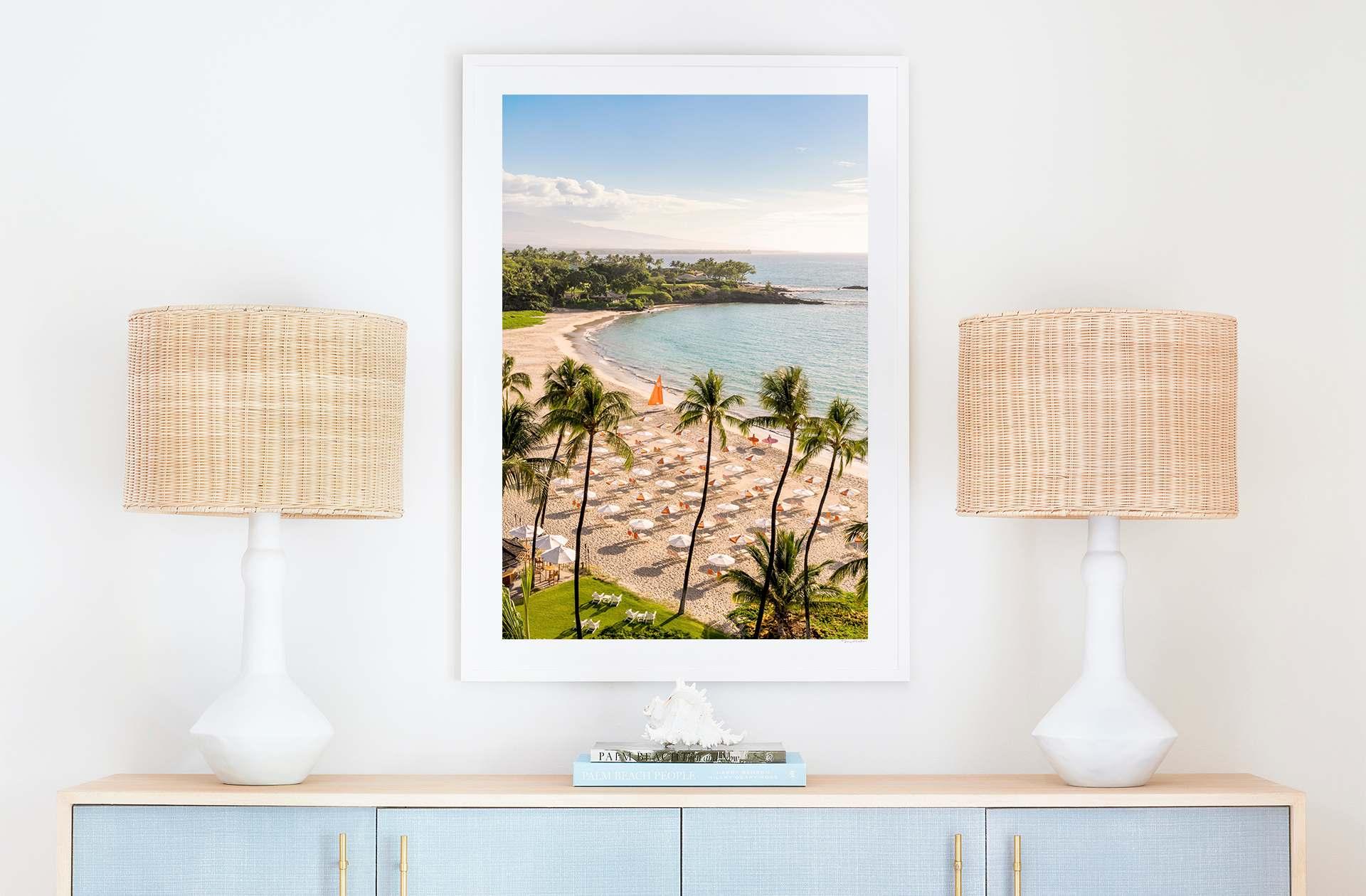 Inspired by the timeless and unique spirit off Hawai’i, Gray photographed this collection at the beloved Mauna Kea Beach Hotel. Vintage props, striped beachside umbrellas, and more decorate eye-catching locations throughout the property celebrating the island lifestyle and transporting you to a tropical paradise.